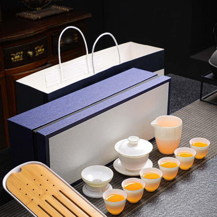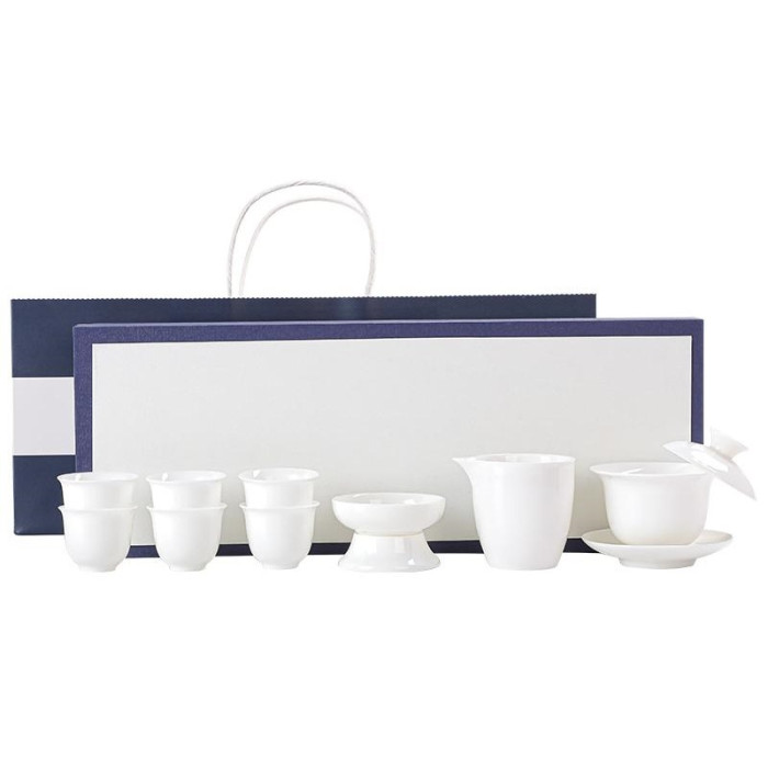 懸停羊脂玉茶具陶瓷過濾蓋碗茶杯茶壺禮盒白瓷家用金邊德化瓷