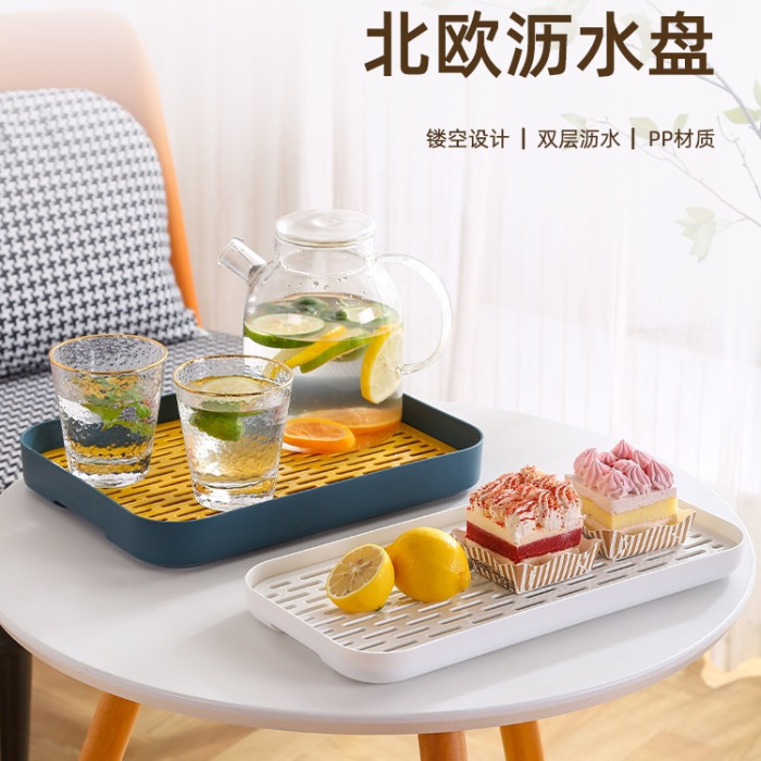 加高茶盤托盤放水杯子架置物架家用客廳茶具收納盤碗筷瀝水盤特大