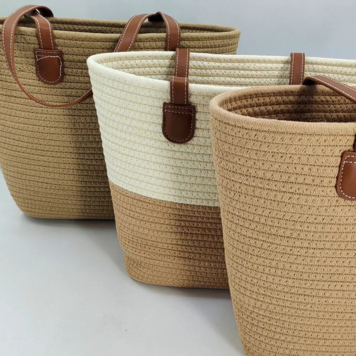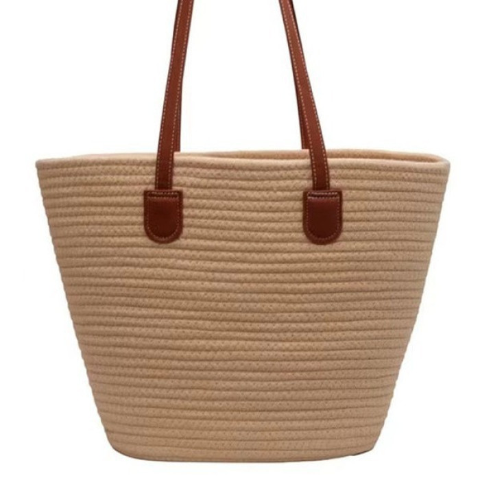 棉繩編織草編包包女大容量2023新款編織包單肩包高級感通勤托特包