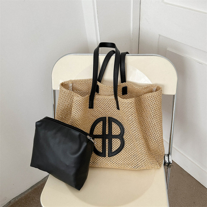 2023新款小清新款編織包撞色草編時尚ins風潮流女包單肩包手提包