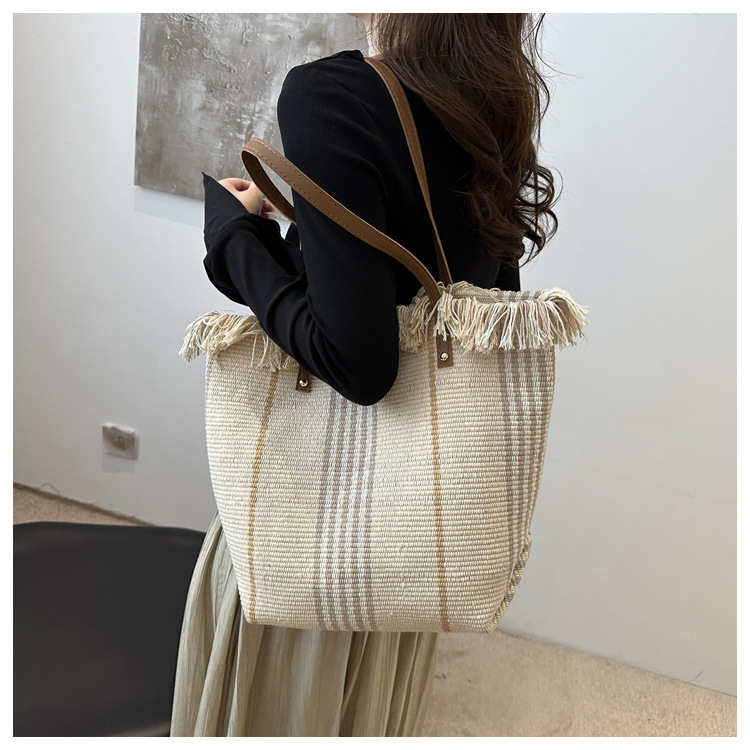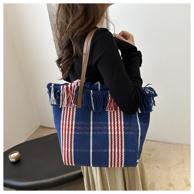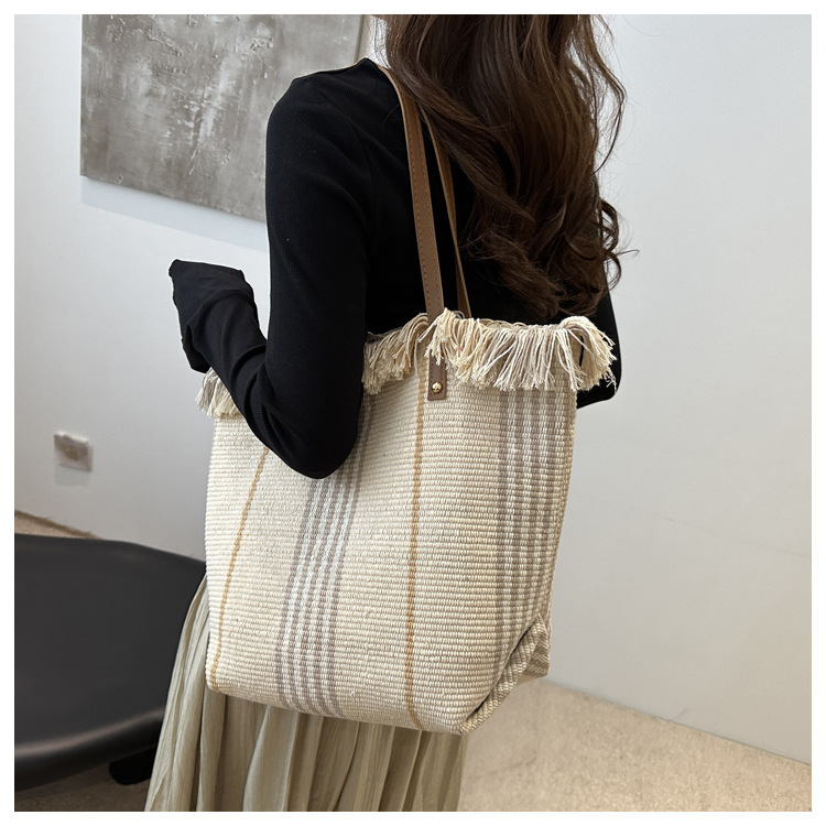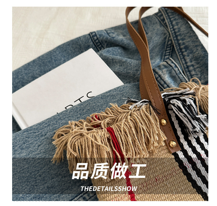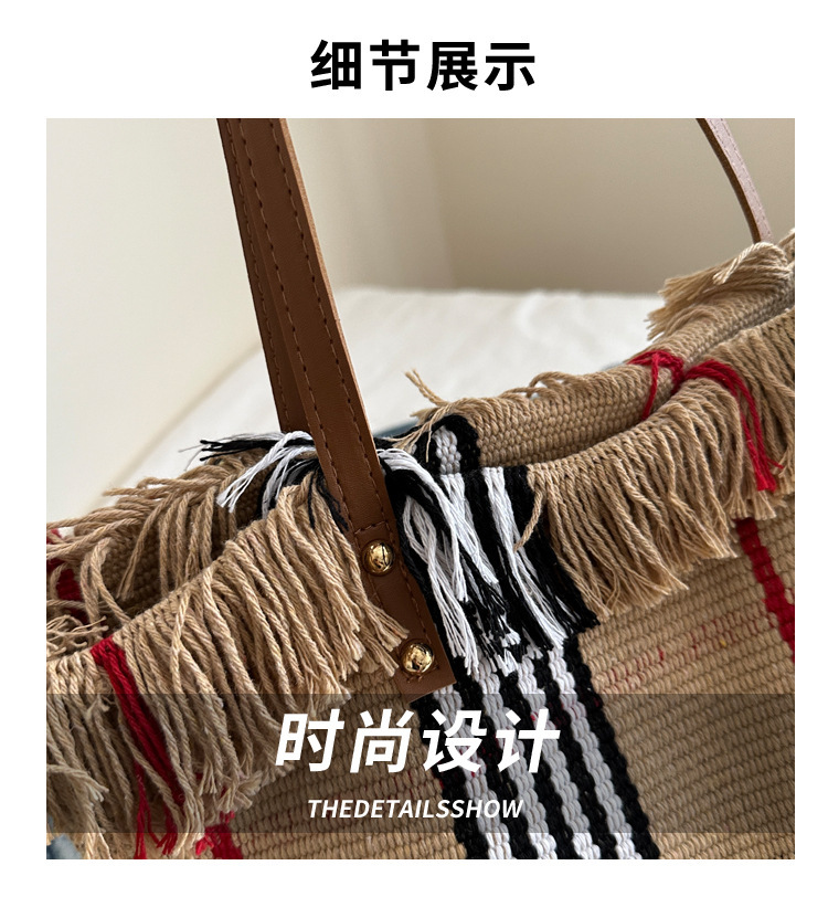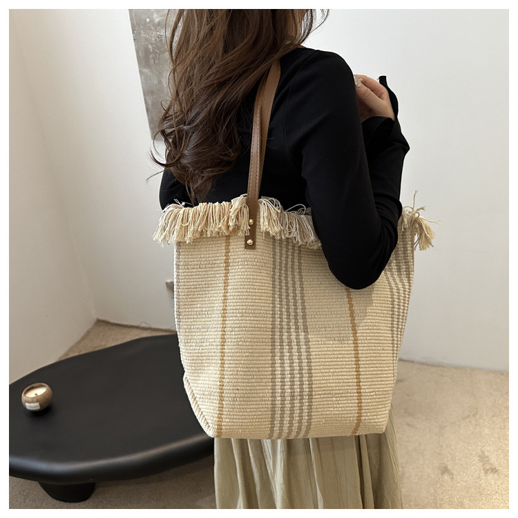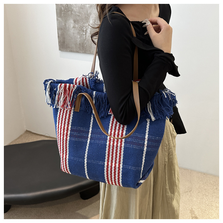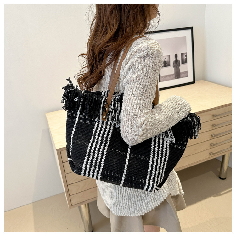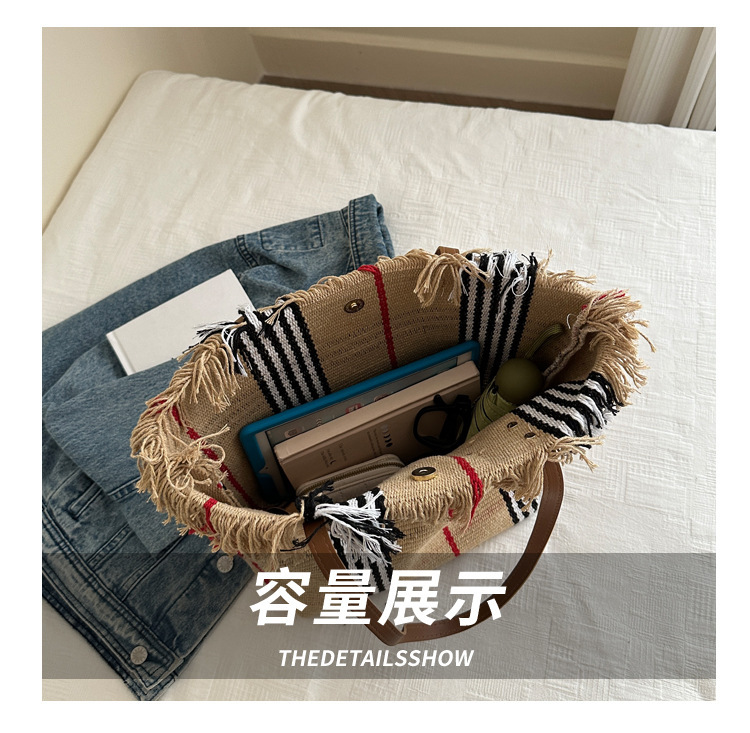 針織流蘇編織包包女2024新款小衆設計時尚托特包個性大容量單肩包