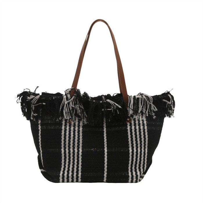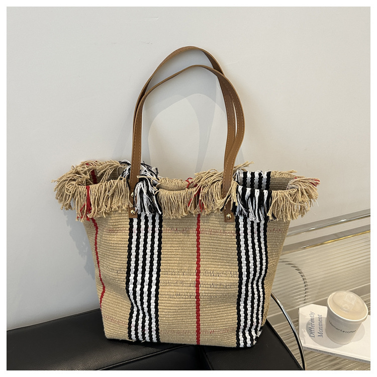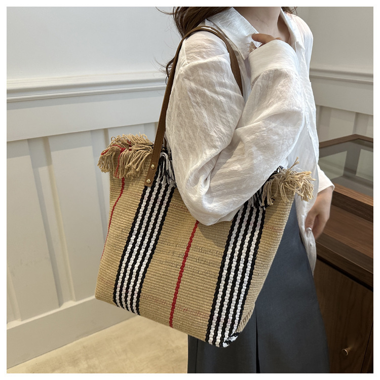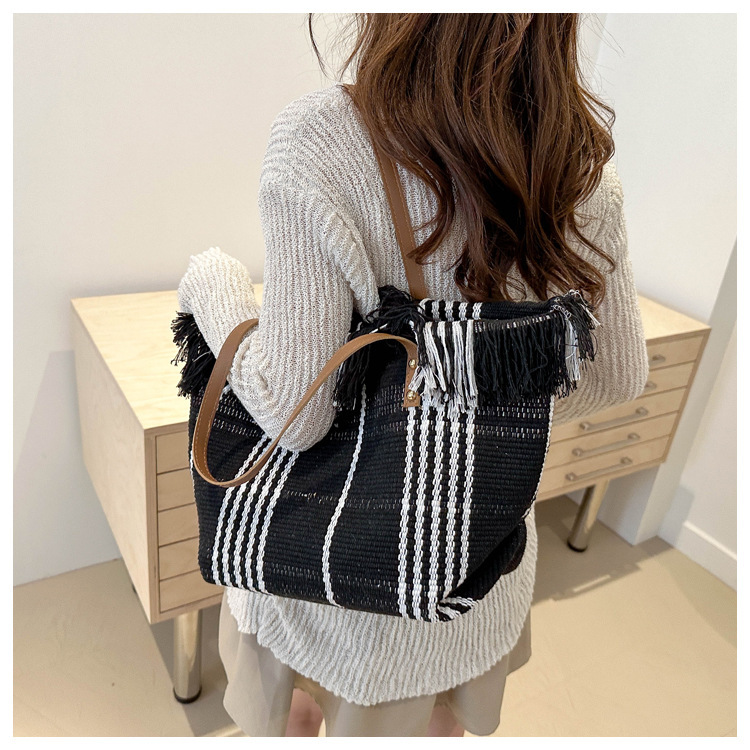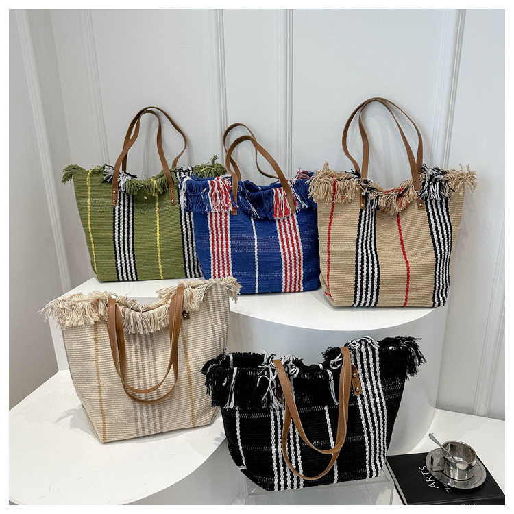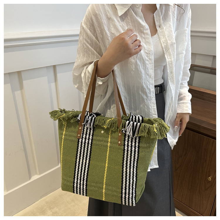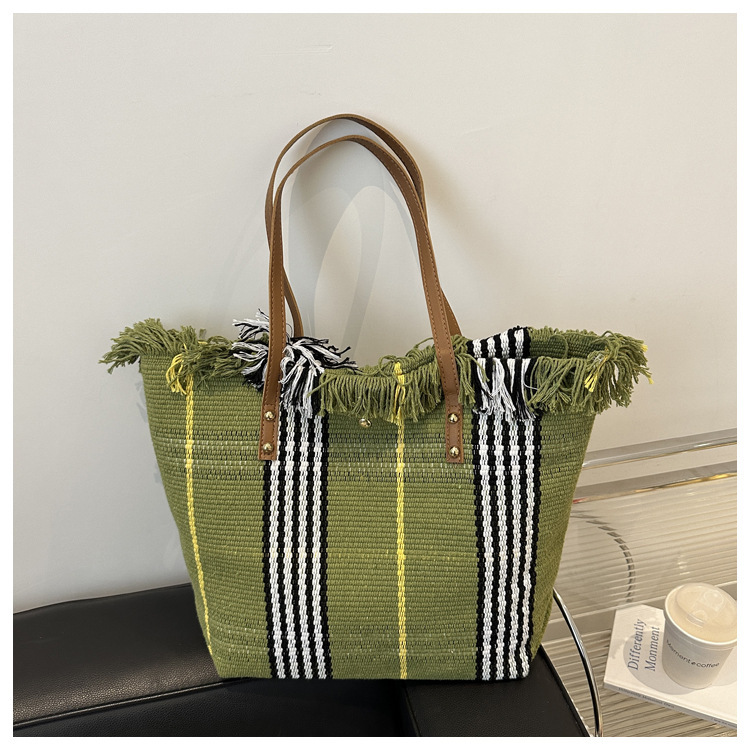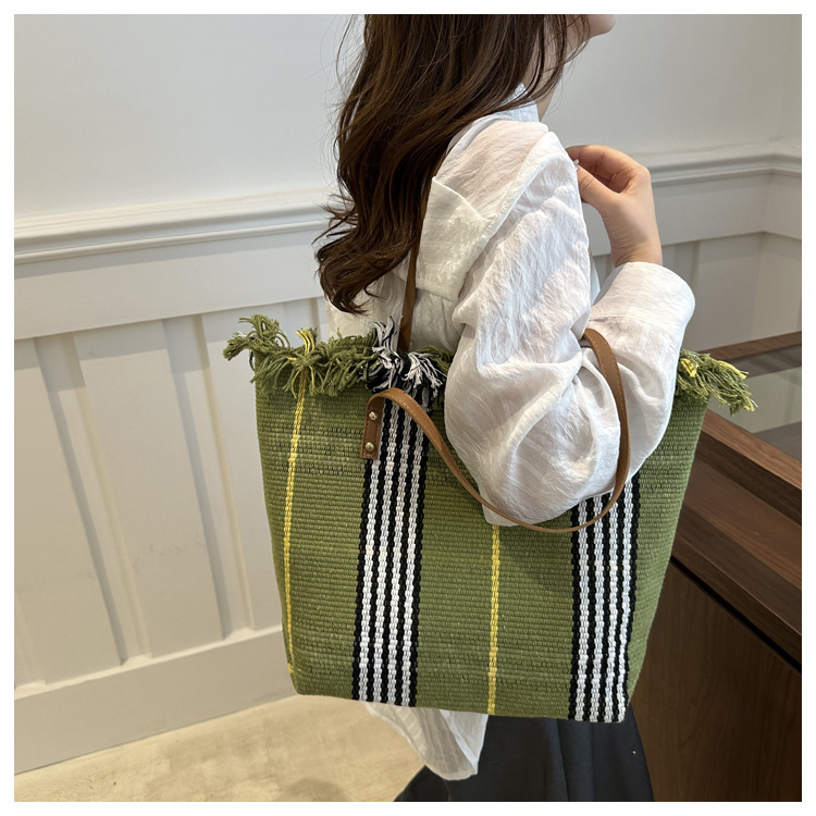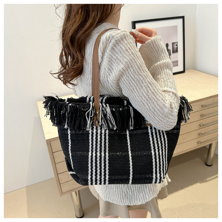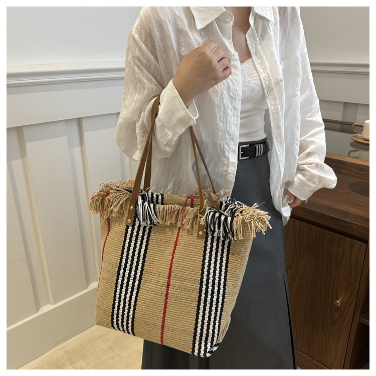 針織流蘇編織包包女2024新款小衆設計時尚托特包個性大容量單肩包