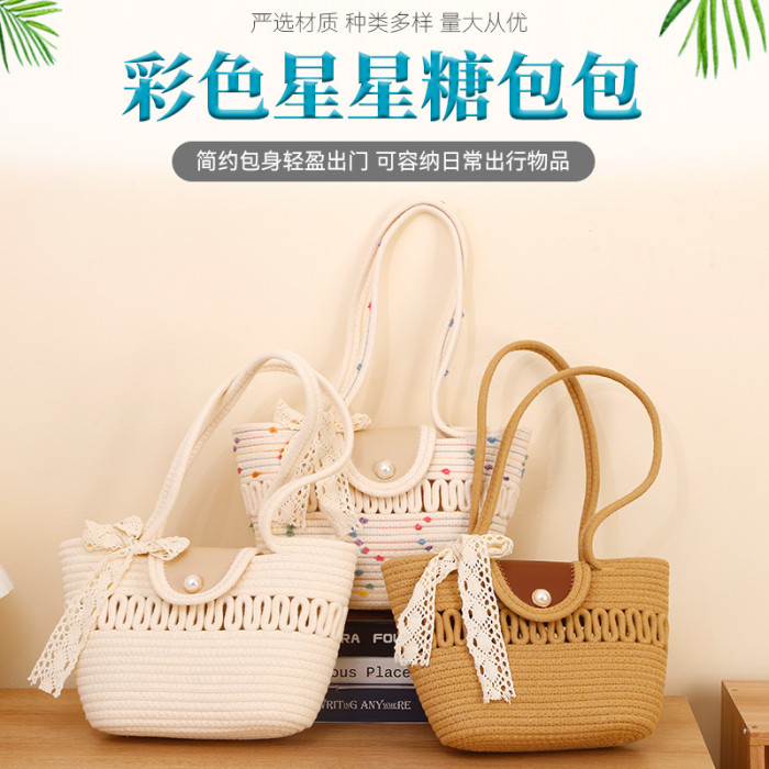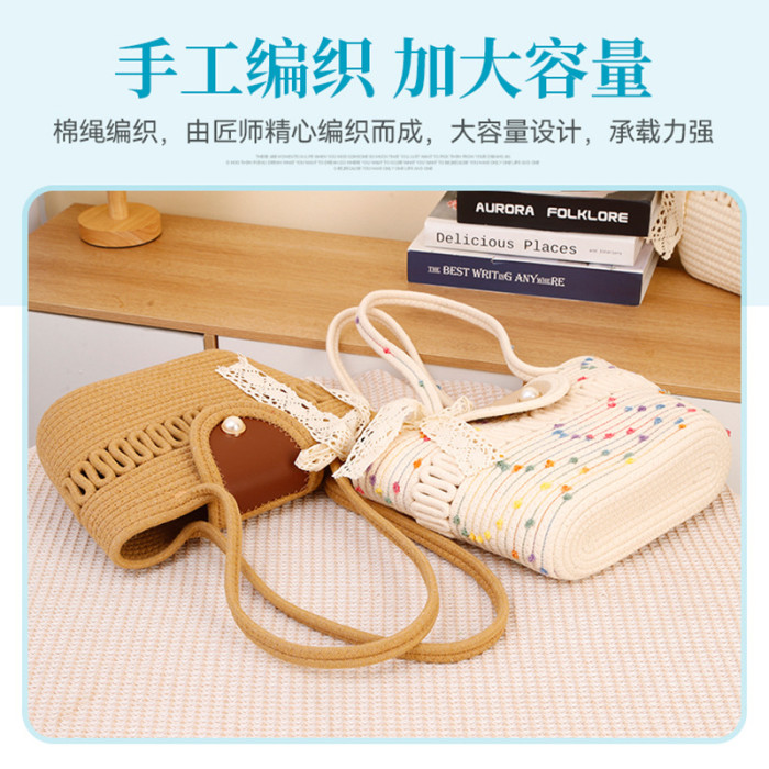 新款復古手提大容量托特包百搭絲巾草編包編織包托特包女沙灘包