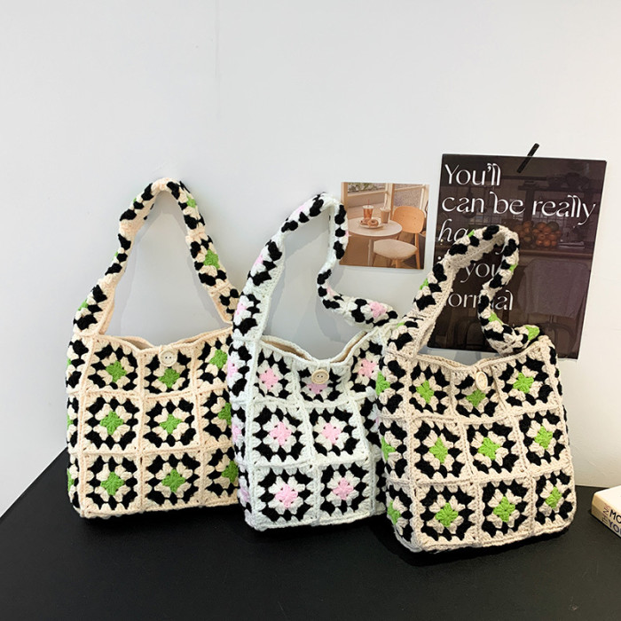 手工diy鉤織祖母方格材料包針織毛線編織包ins森系手拎單肩包女