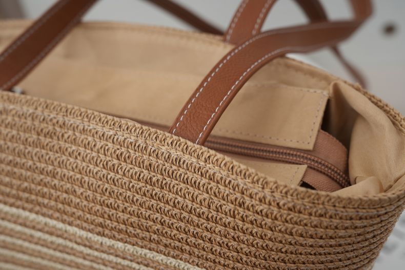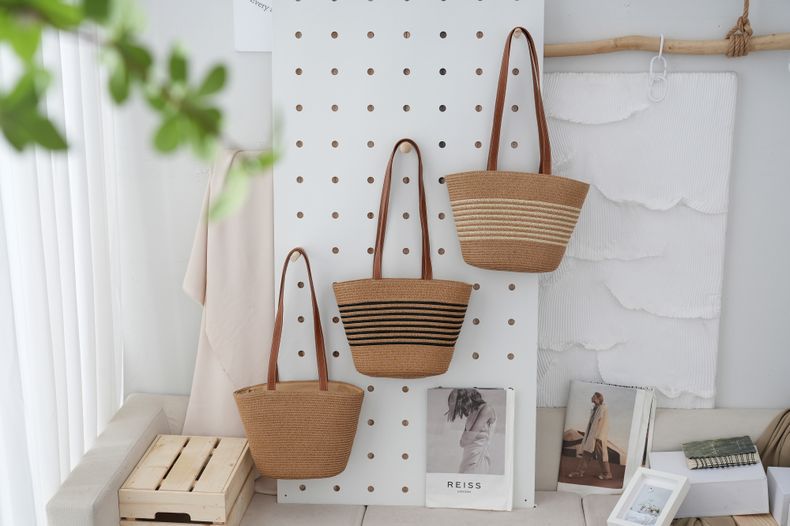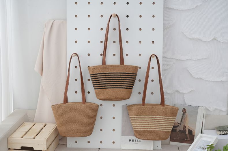 夏天海邊度假草編包女包編織包2024新款條紋通勤單肩托特包大容量