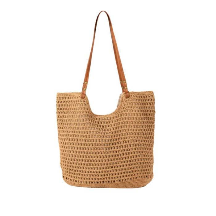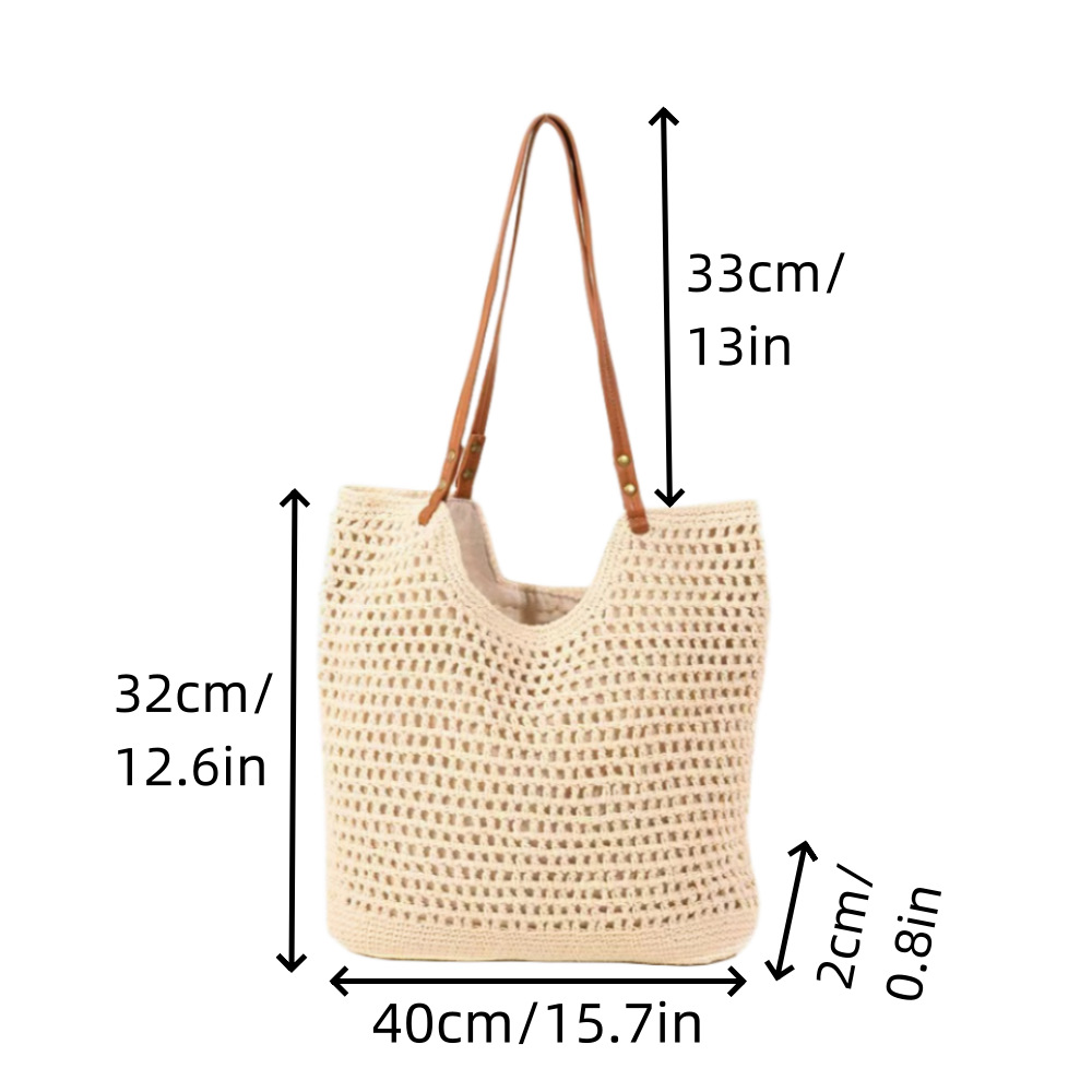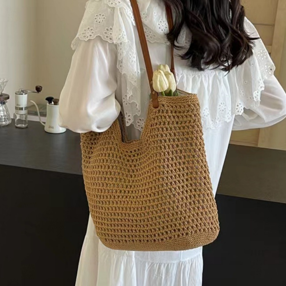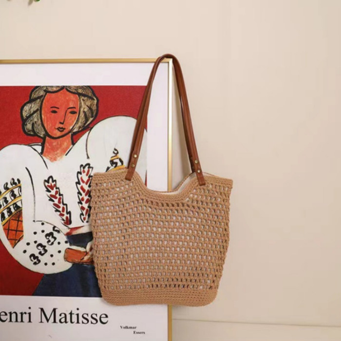 百搭單肩草編包休閒鏤空棉線編織包包手提包大容量慵懶風托特包女