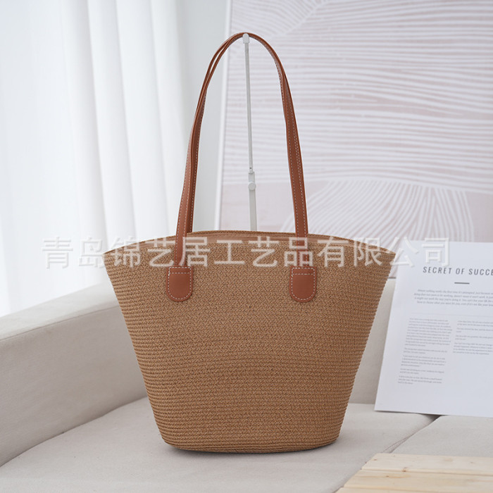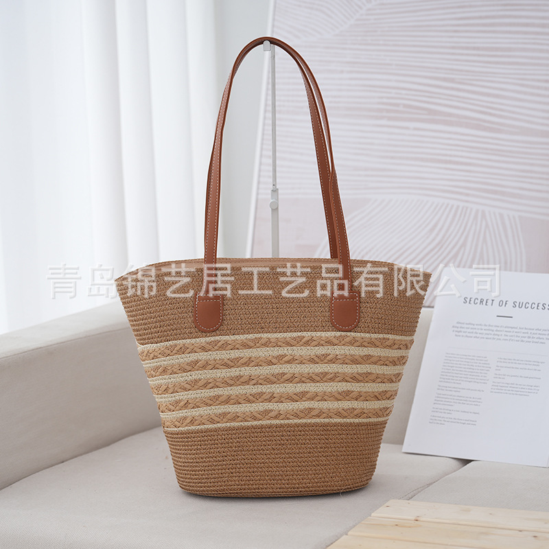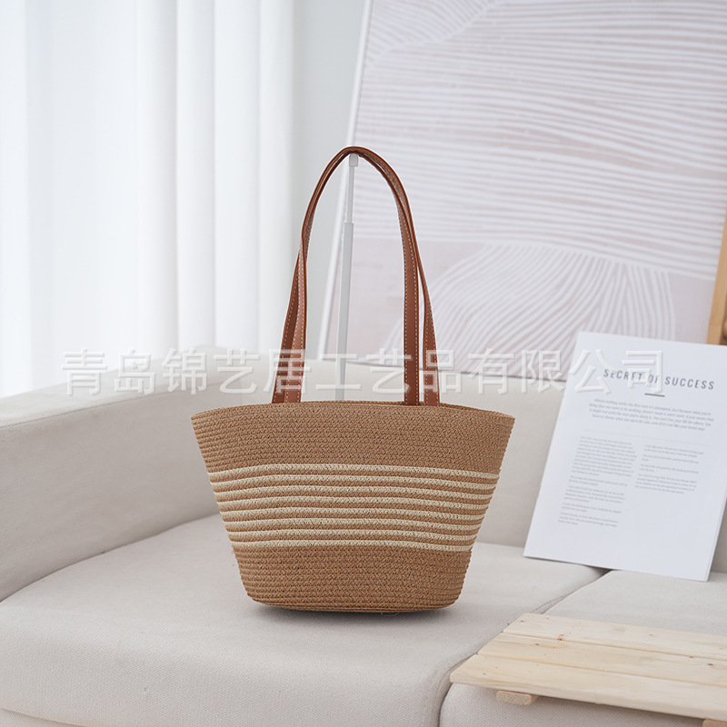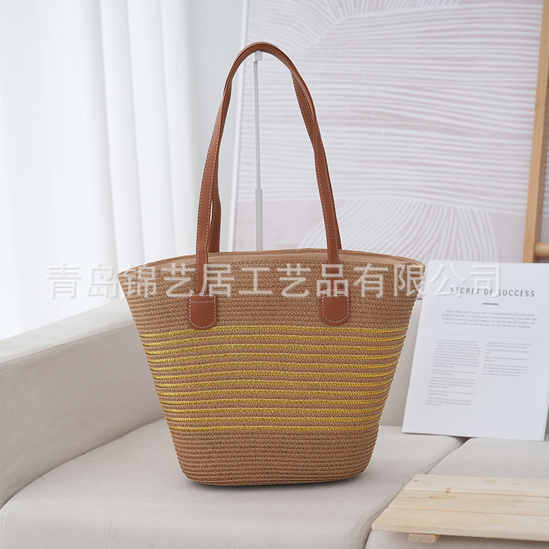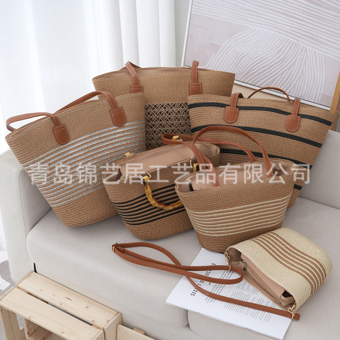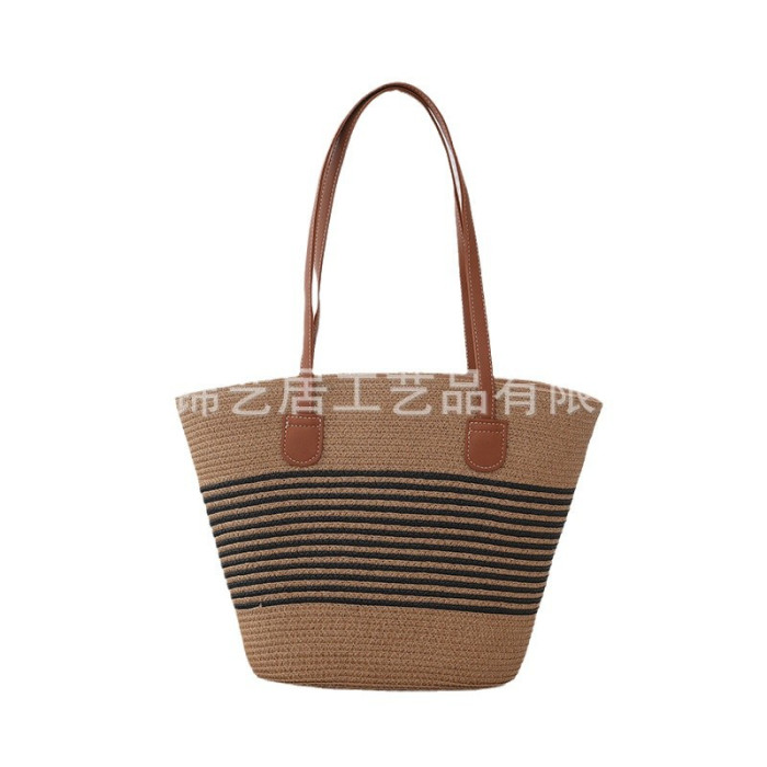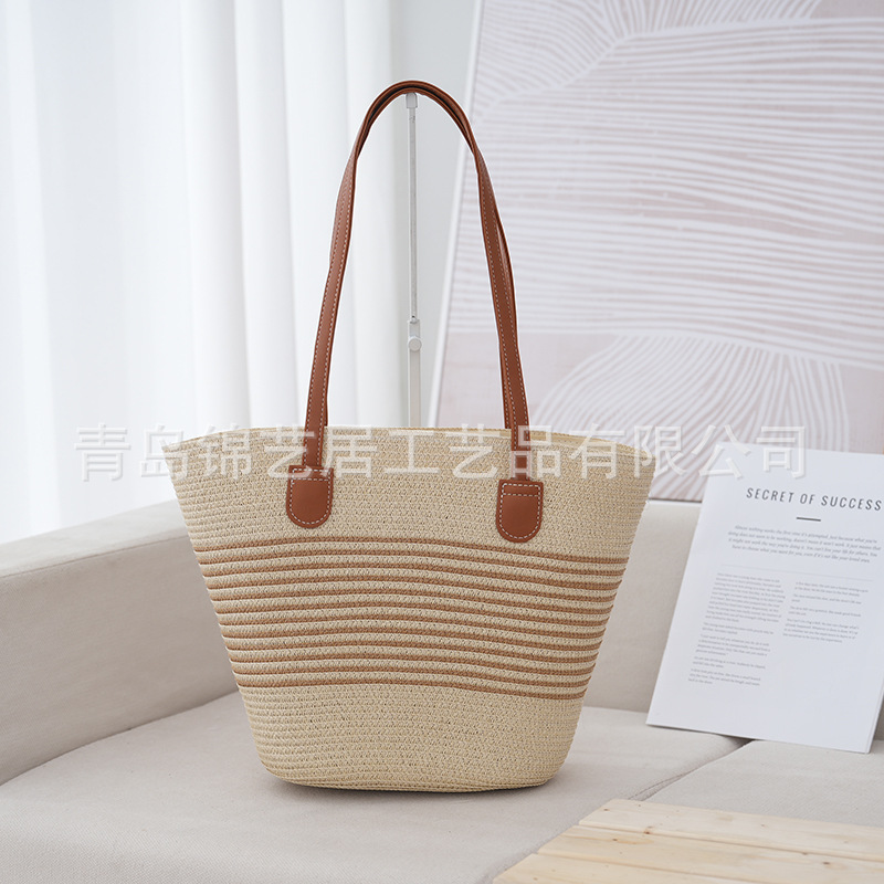 條紋單肩草編包手提包新款大容量休閒時尚女海邊沙灘藤編織包