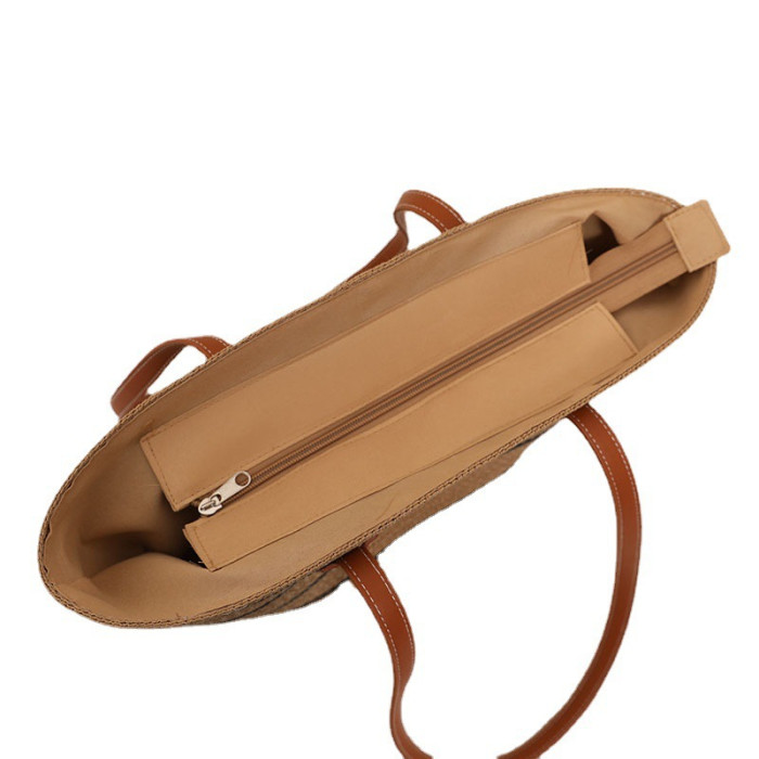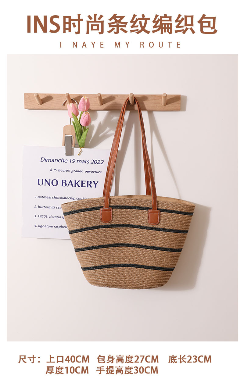 條紋單肩草編包編織包夏季新款大容量休閒百搭女海邊沙灘藤編織包