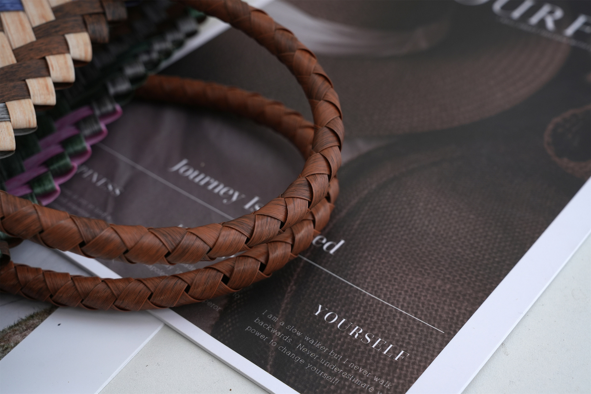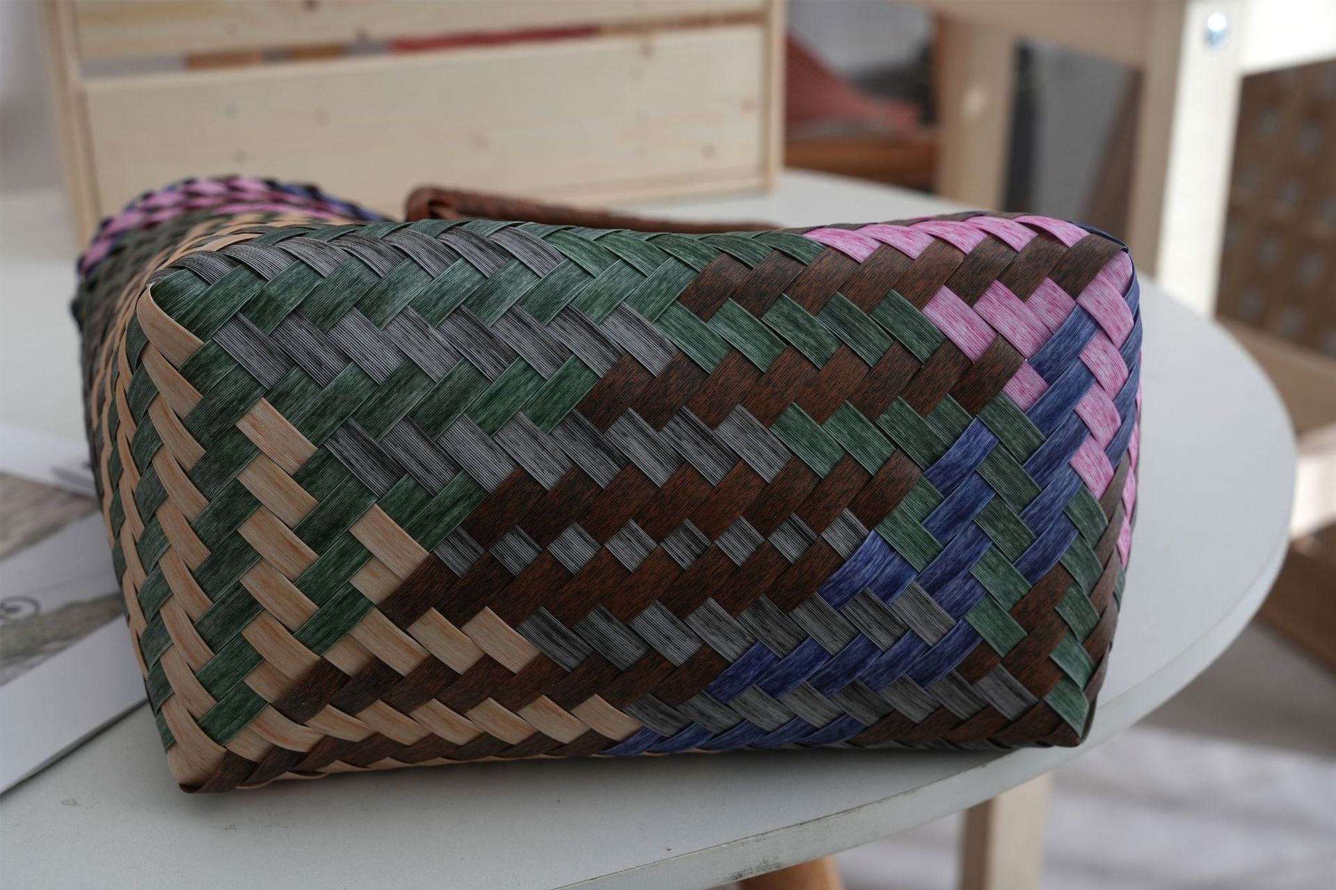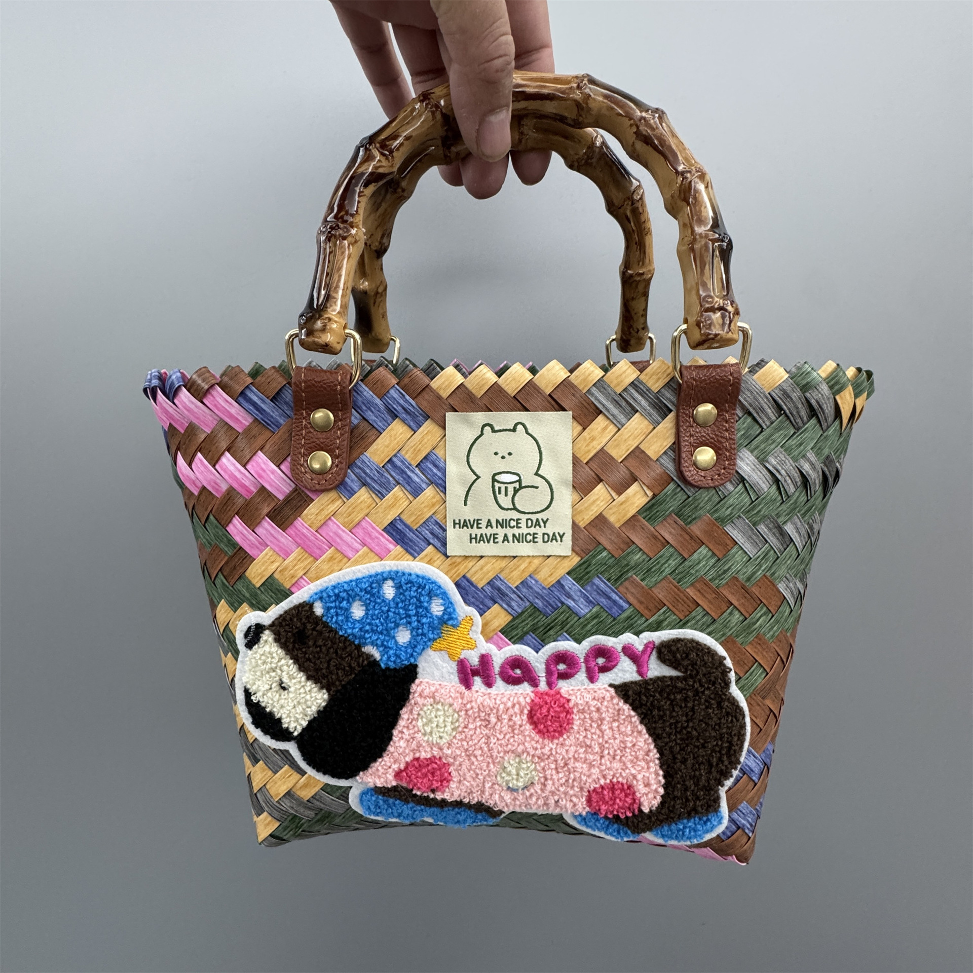 新款復古條紋臘腸狗多色編織托特包通勤女士手提包編織包包
