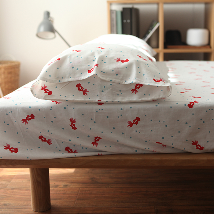 #迴響#同款原創復古和風斜紋全棉新疆棉床笠+枕套組合 金魚姬
