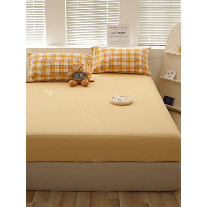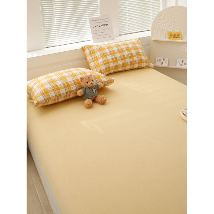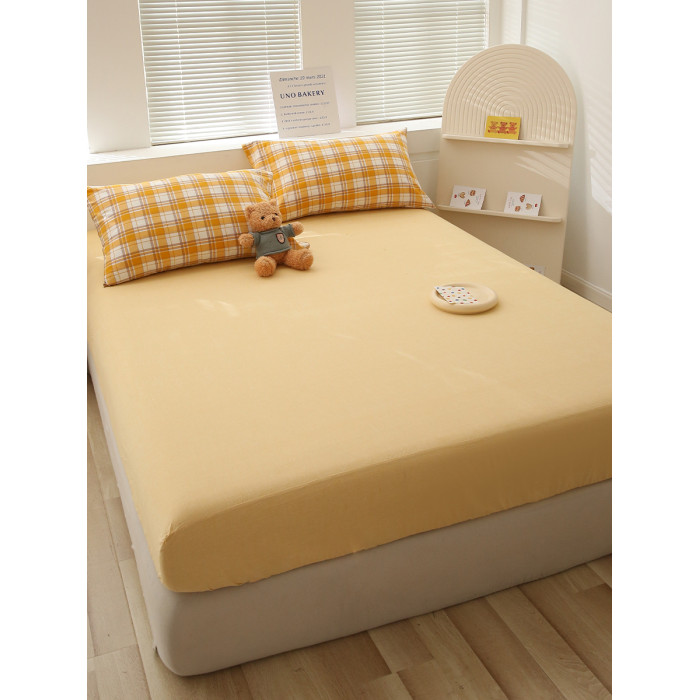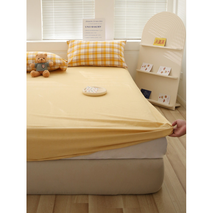 【富士商店】日式簡約純色水洗全棉床笠學生被單多彩單件床罩純棉