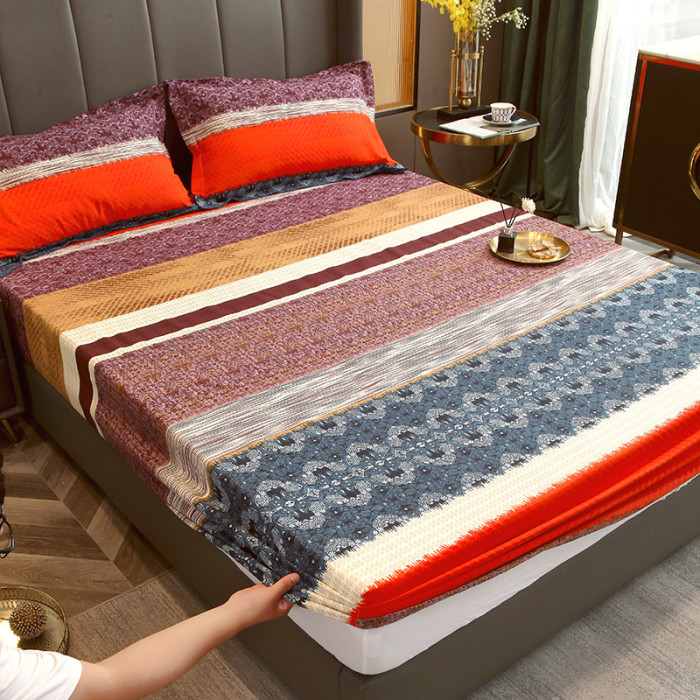 復古民族風純棉床笠單件全棉磨毛蓆夢思床墊套全包防滑床罩四件套