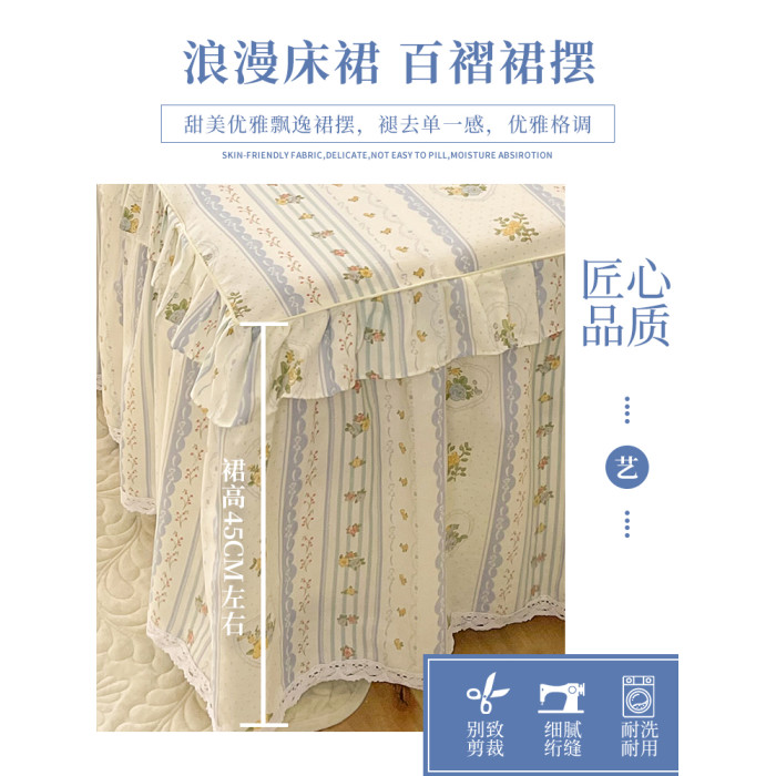 純棉床笠式床罩三件套公主風全棉床裙單件防滑床單套帶裙邊防塵罩