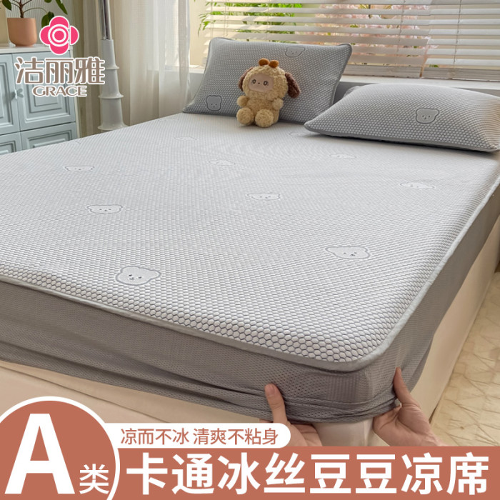 冰豆豆涼蓆夏天2025新款a類母嬰級夏季可水洗兒童涼感冰絲蓆床笠
