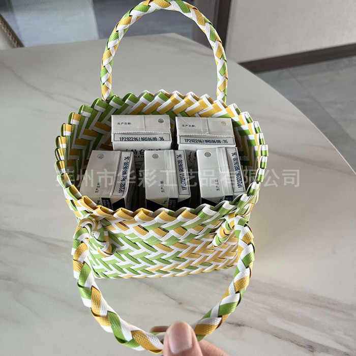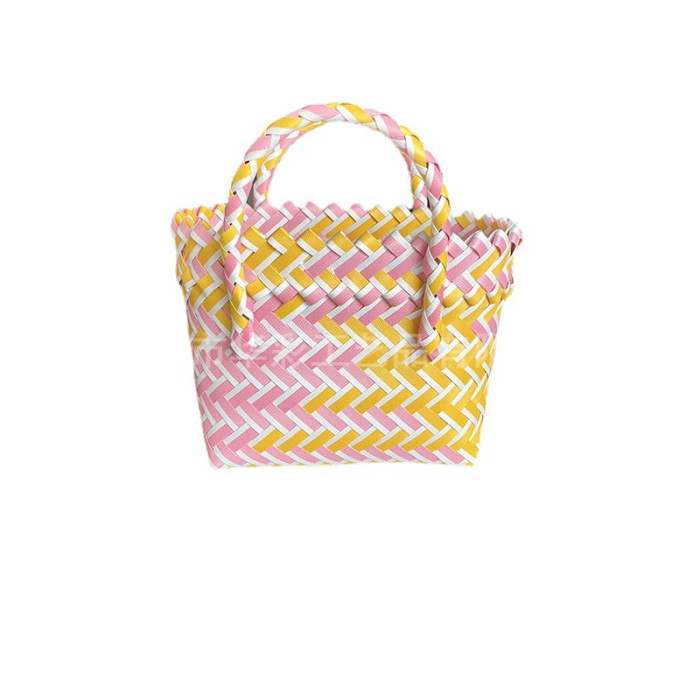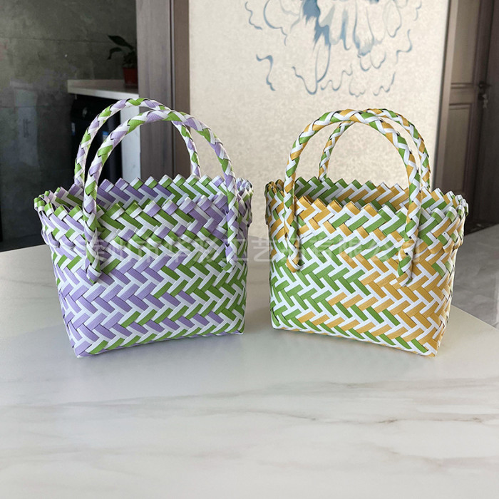 編織包伴手禮拍照裝飾手提包塑膠編織拼色款女士包包手拎包