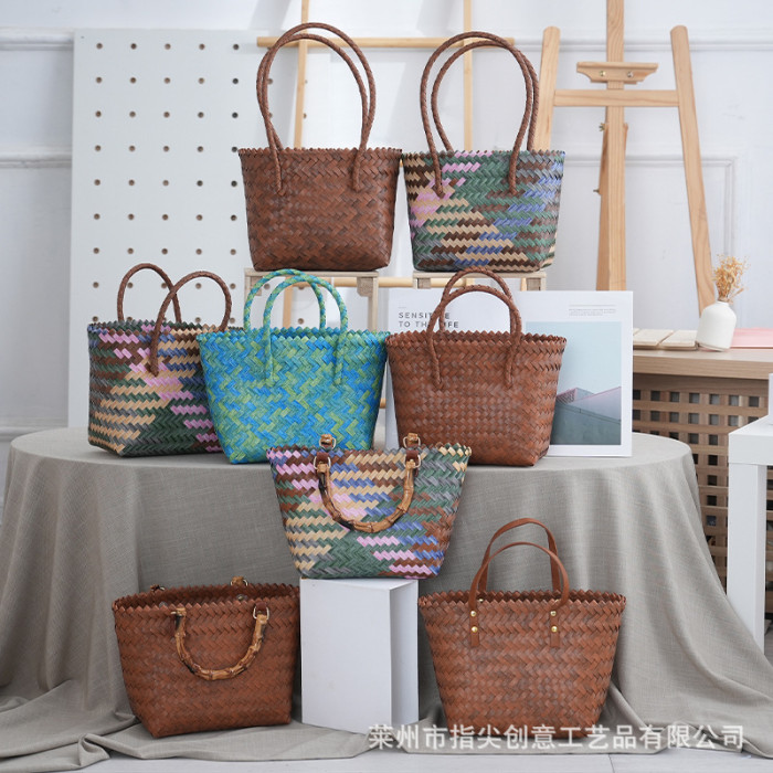 復古法式大容量手工編織包伴手禮菜籃子女士手提包海邊度假沙灘包