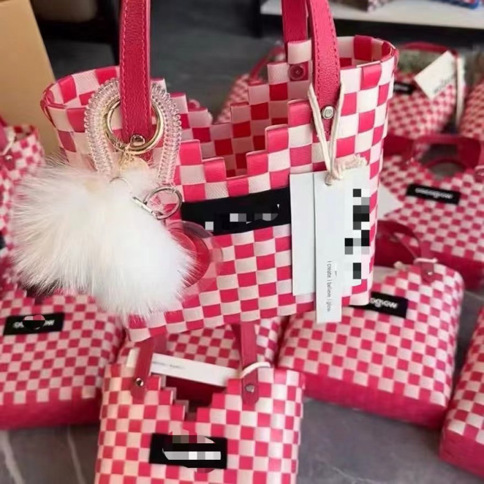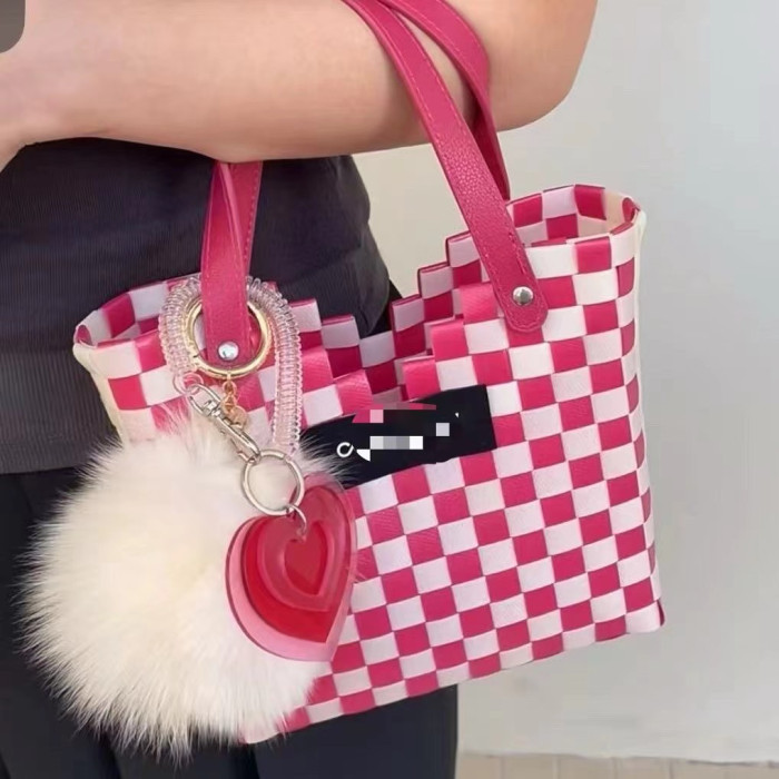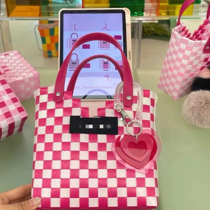新款泰國潮牌手工編織包大容量菜籃子女手提包拼色度假休閒女包