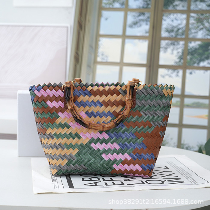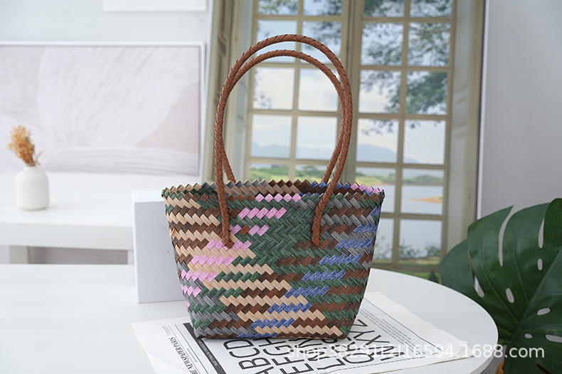2024新款森系手提編織包大容量簡約手拎女包洋氣手提購物包沙灘包