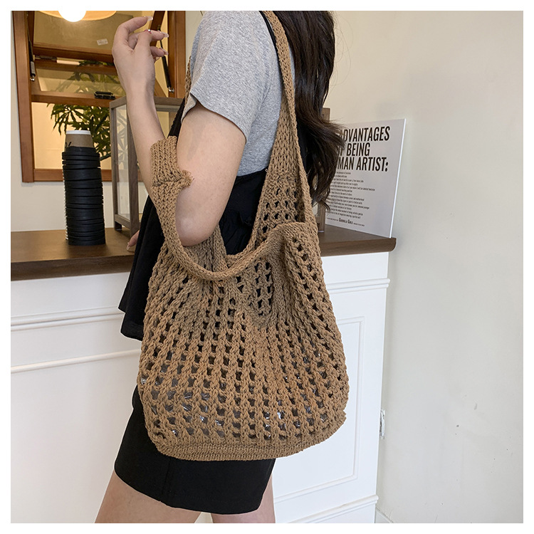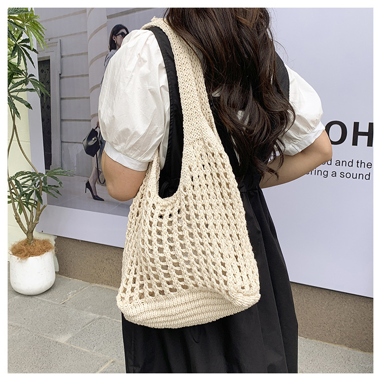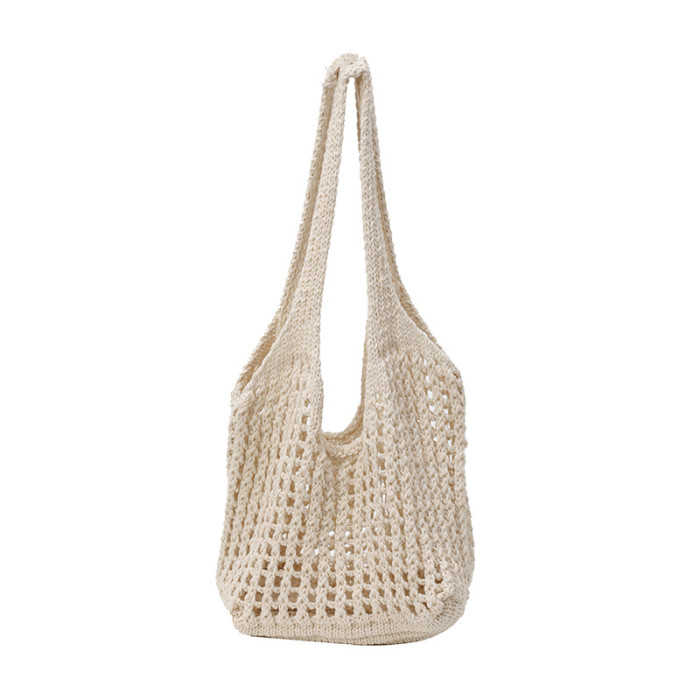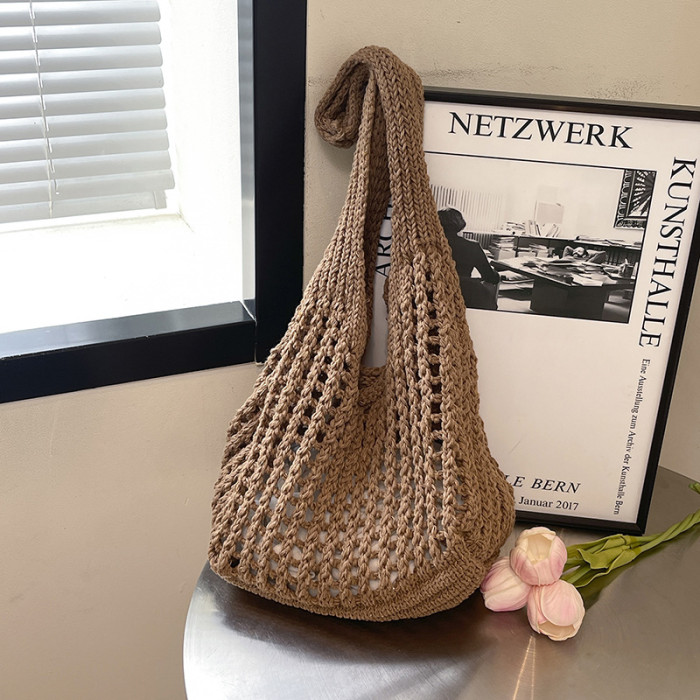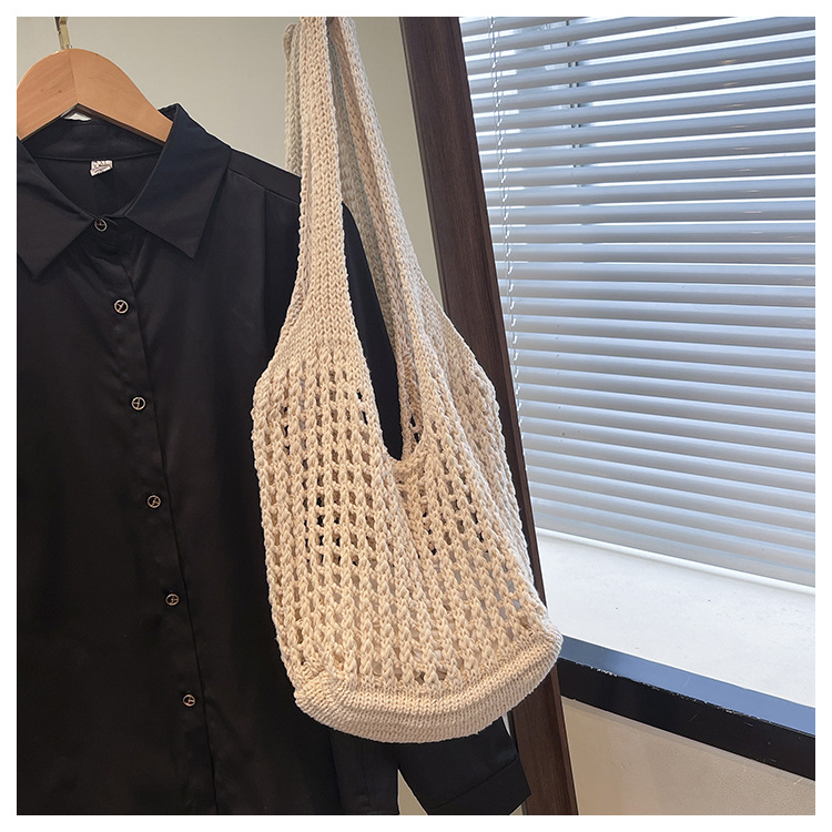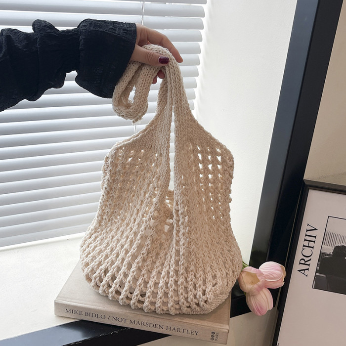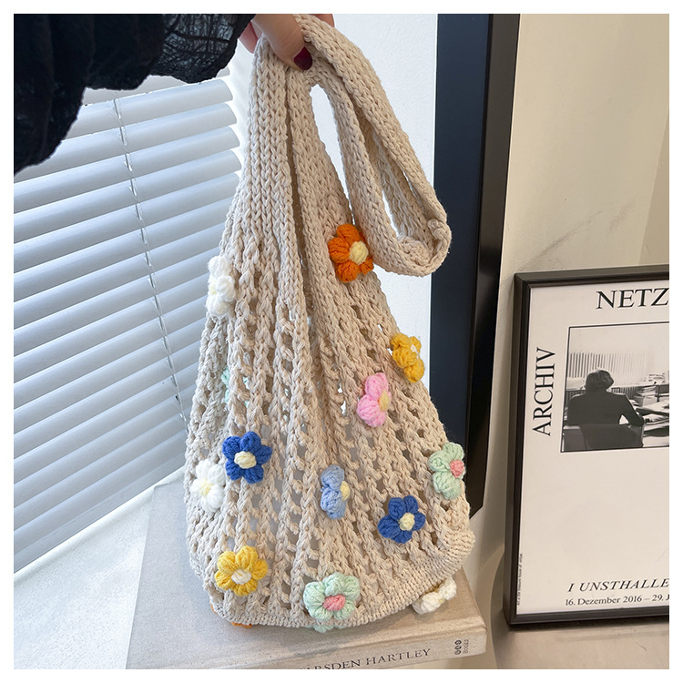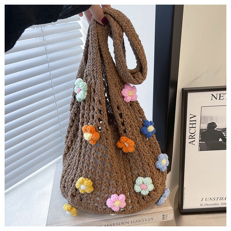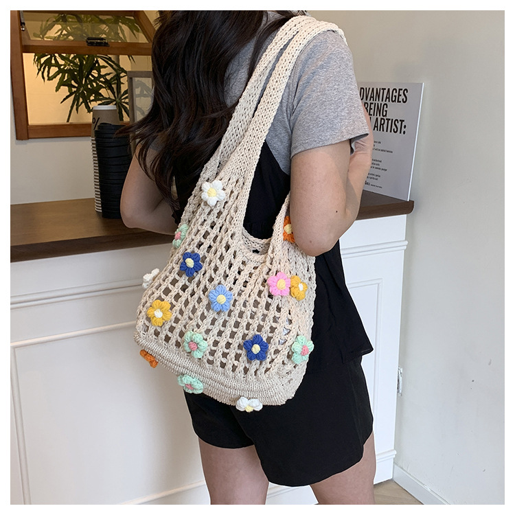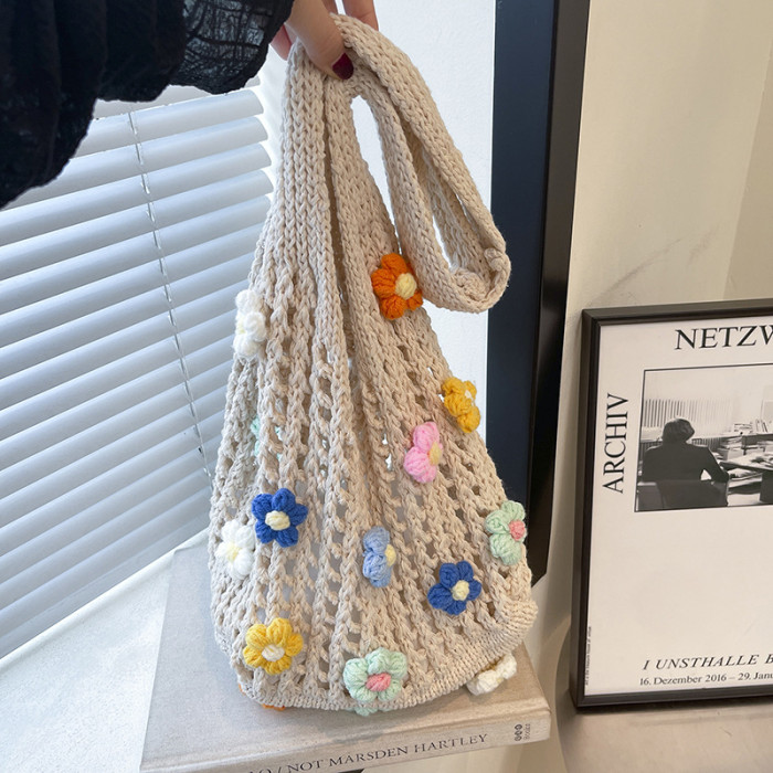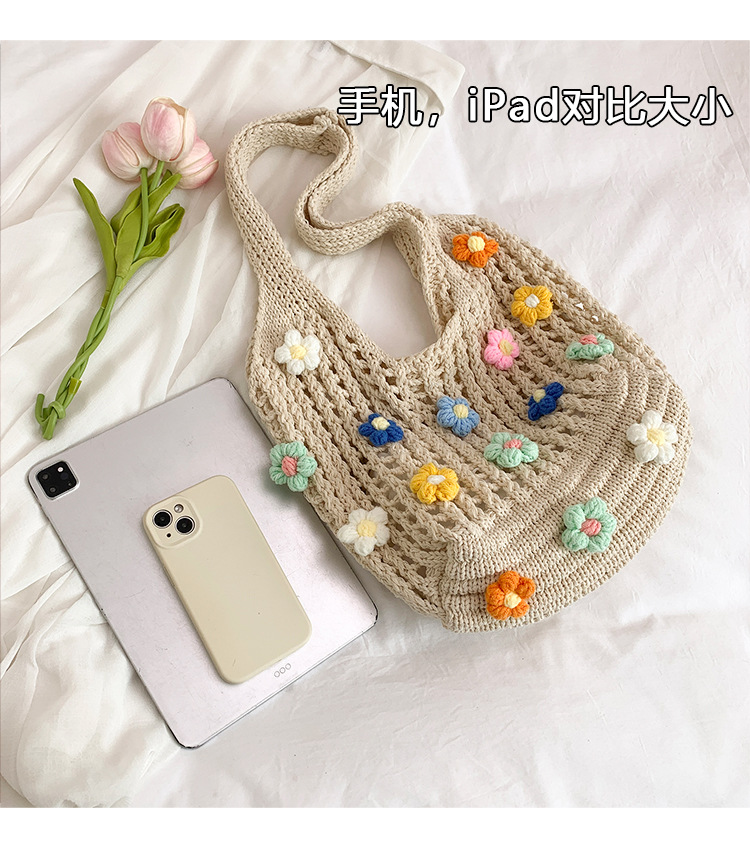大容量通勤高級感花朵托特包女2025新款夏季鏤空針織包單肩編織包