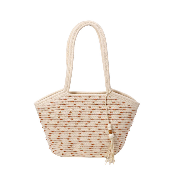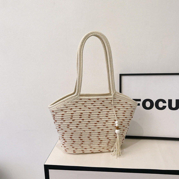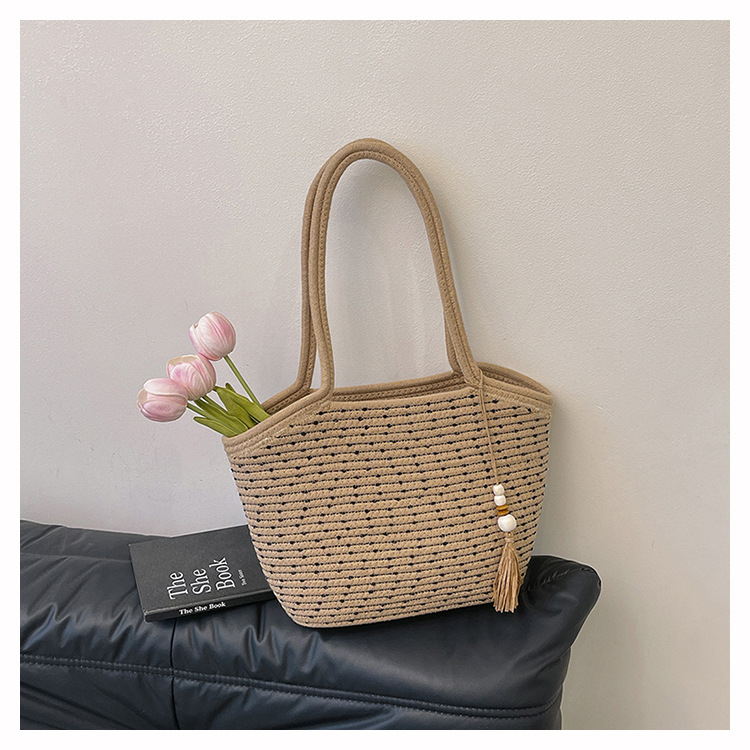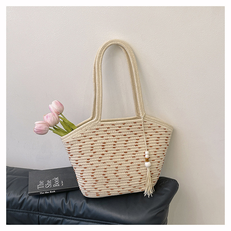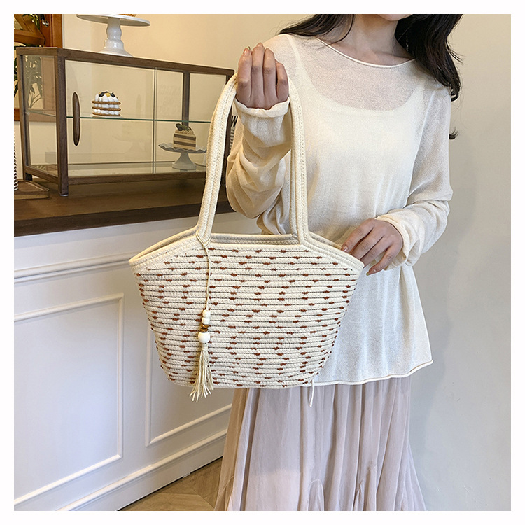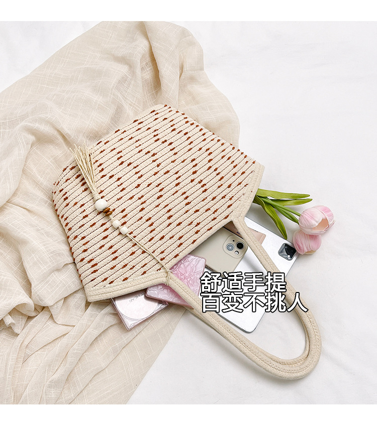 新款棉繩編織包新中式古風手工編織花穗手提包可攜式大容量托特女包