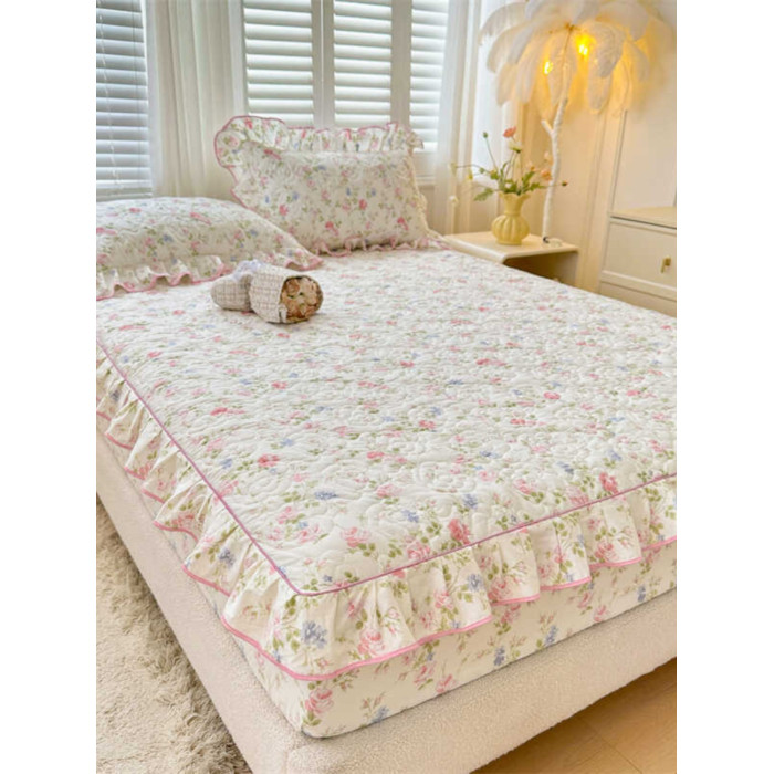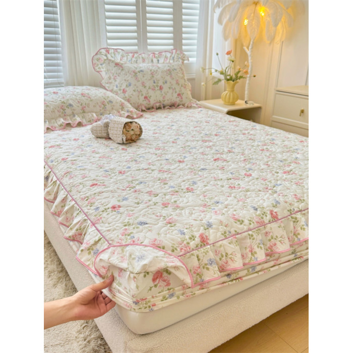 A類全棉夾棉床笠100%純棉親膚母嬰床罩蓆夢思床墊套韓式花邊全包