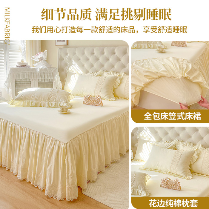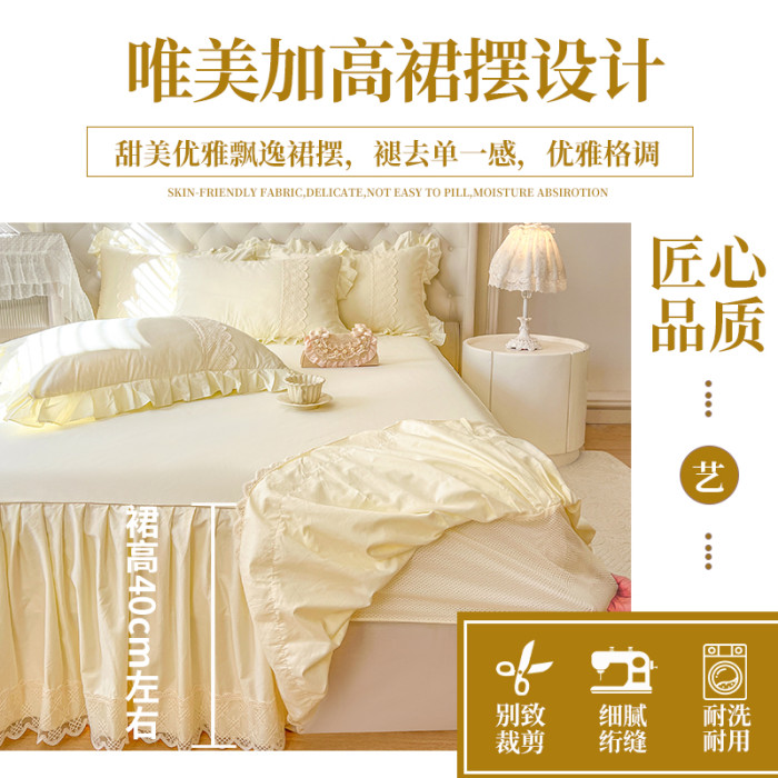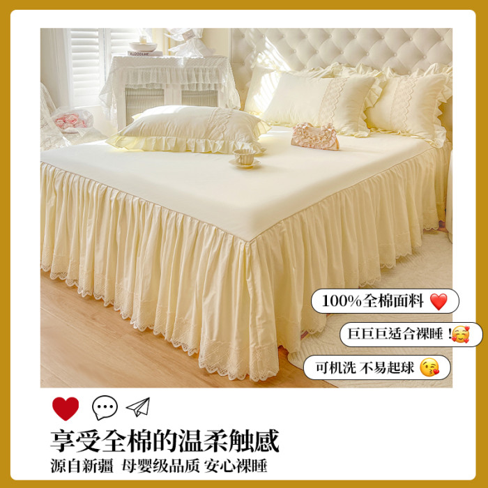 純棉床笠式床罩三件套公主風全棉床裙單件防滑床單套帶裙邊防塵罩
