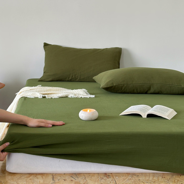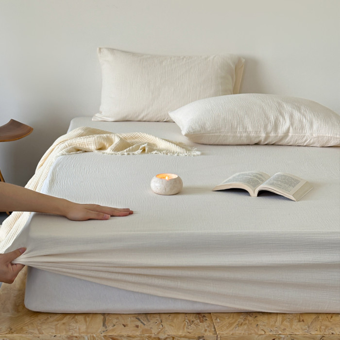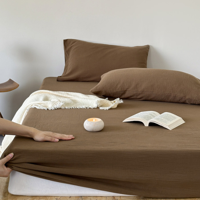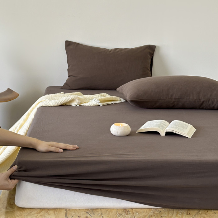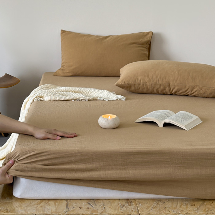 拿捏#高級感美拉德色系單床罩A類加厚全棉皺皺紗純棉親膚柔軟床笠