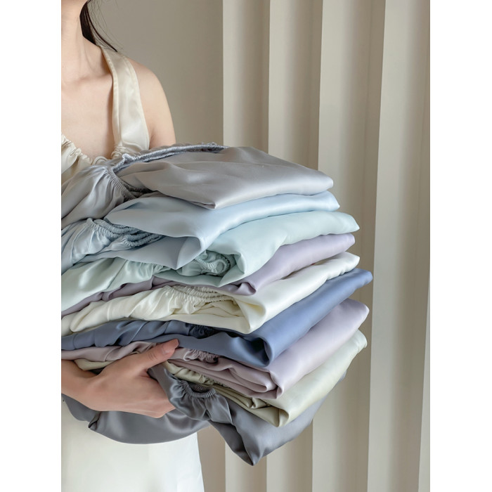 床笠單件莫蘭迪色80S天絲防滑全包床墊套枕套冰絲裸睡床罩1.8床單
