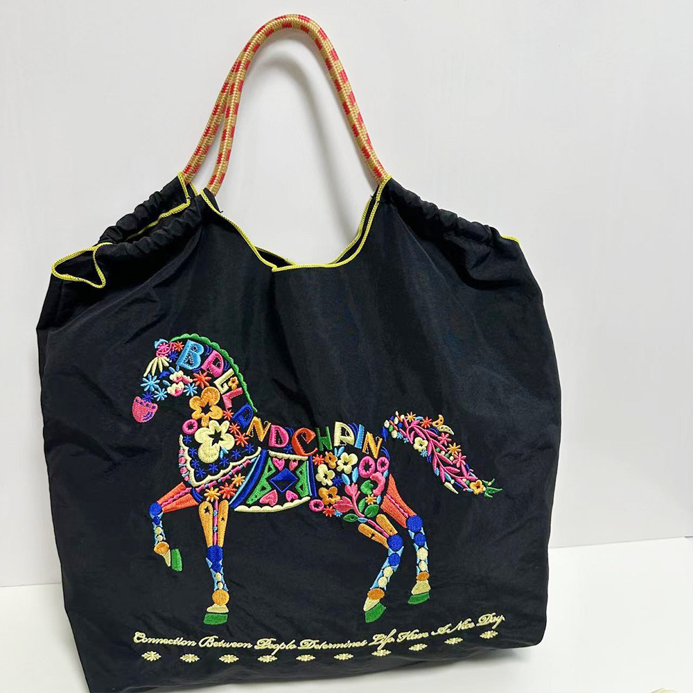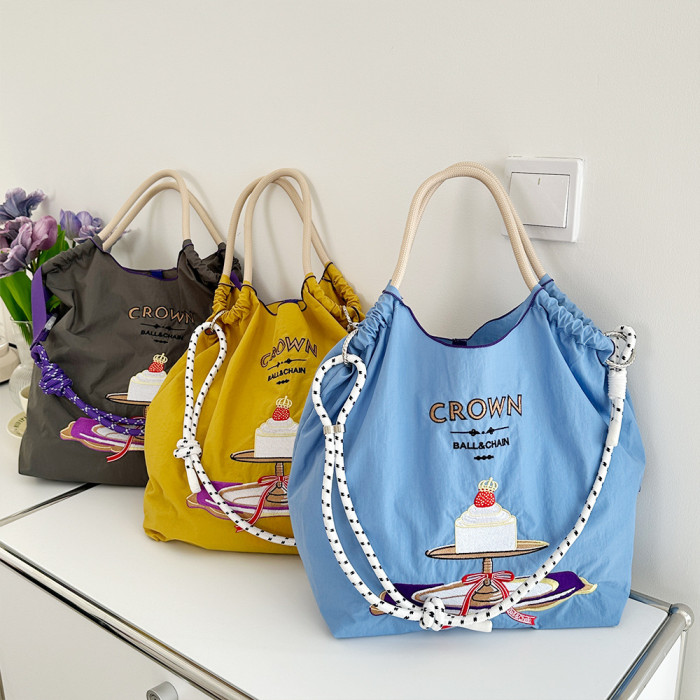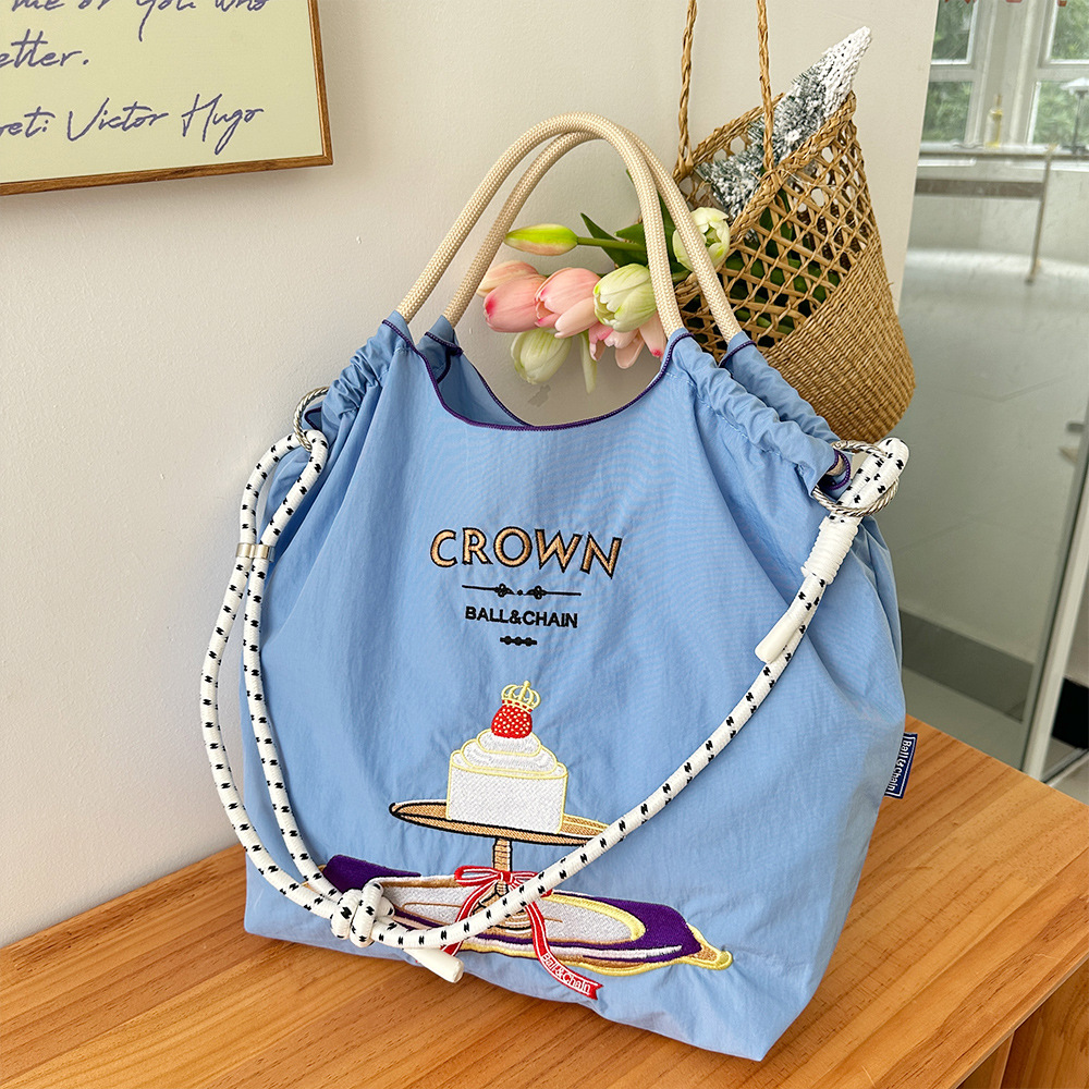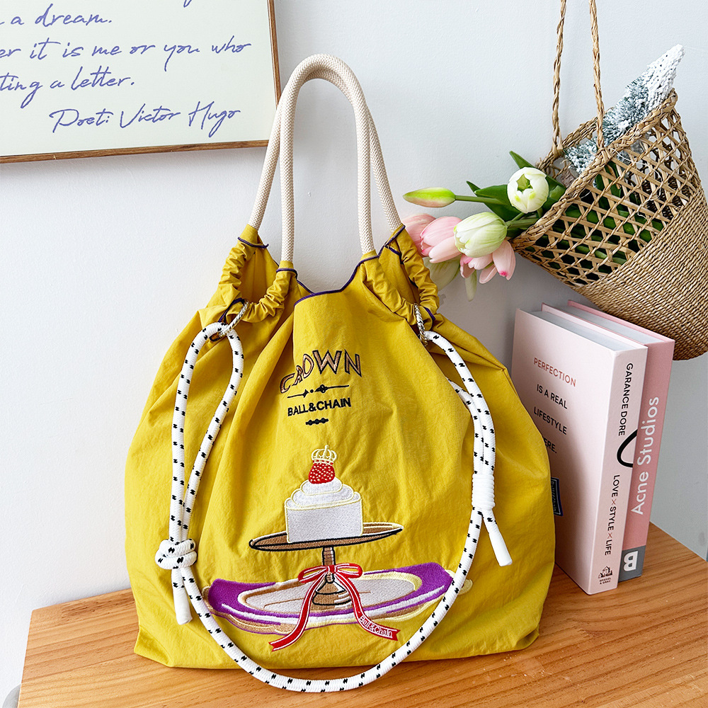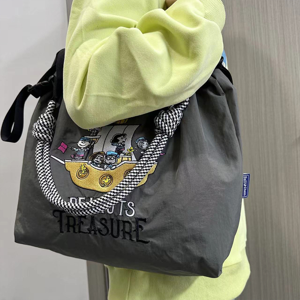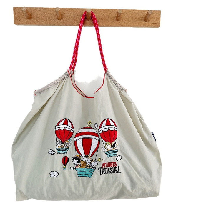 日系ball chain帆布包尼龍刺綉環保購物袋單肩包斜背通勤托特包女
