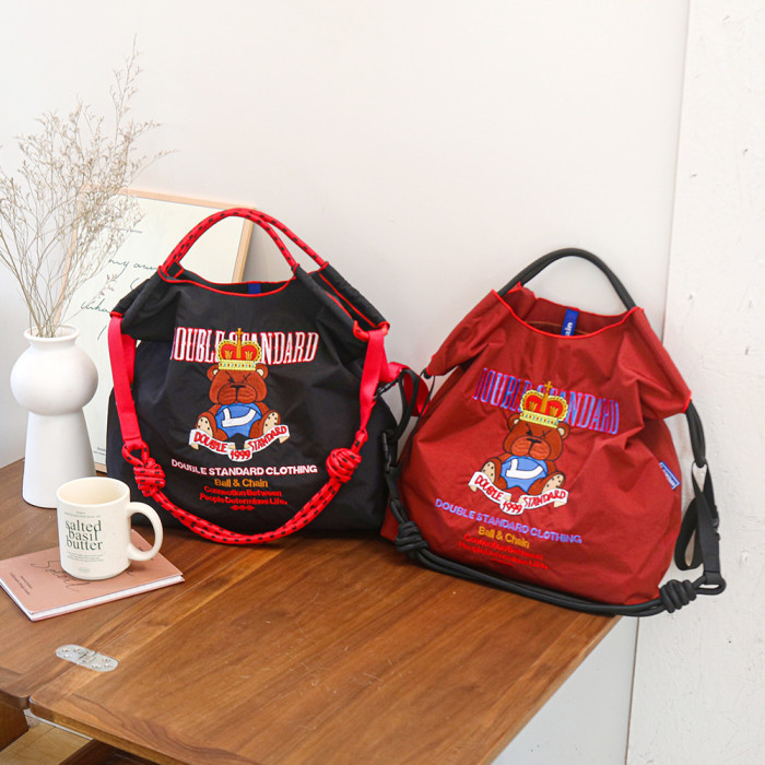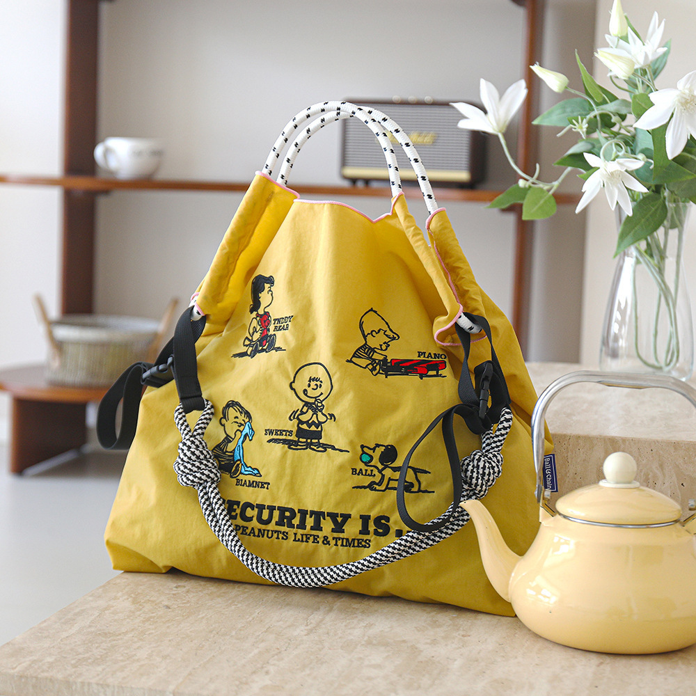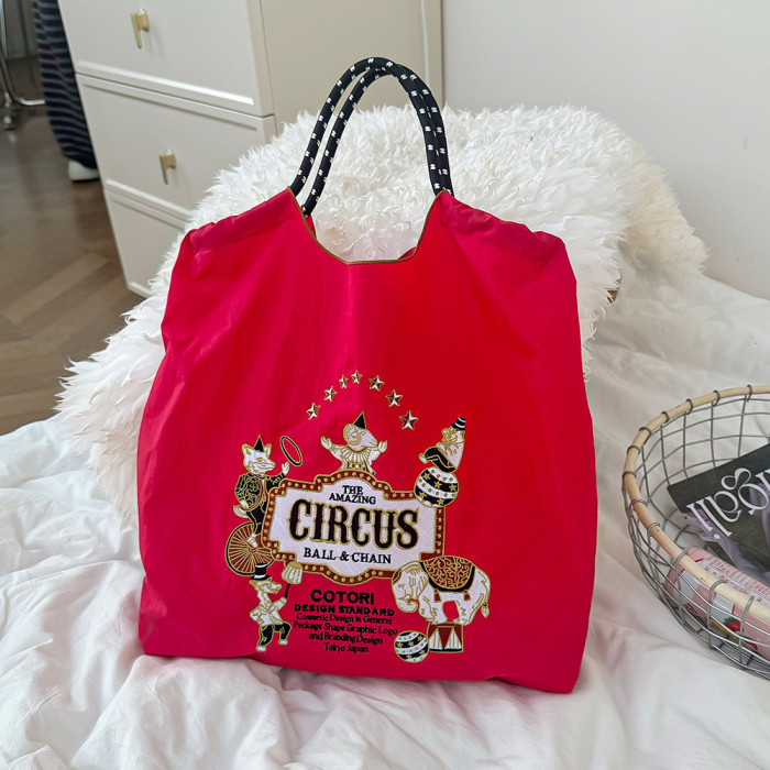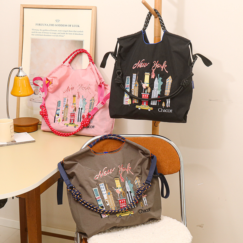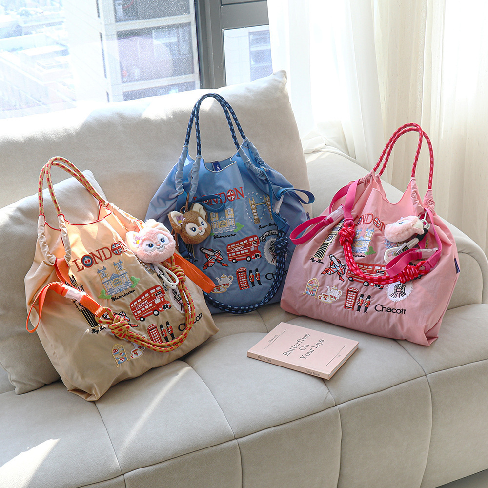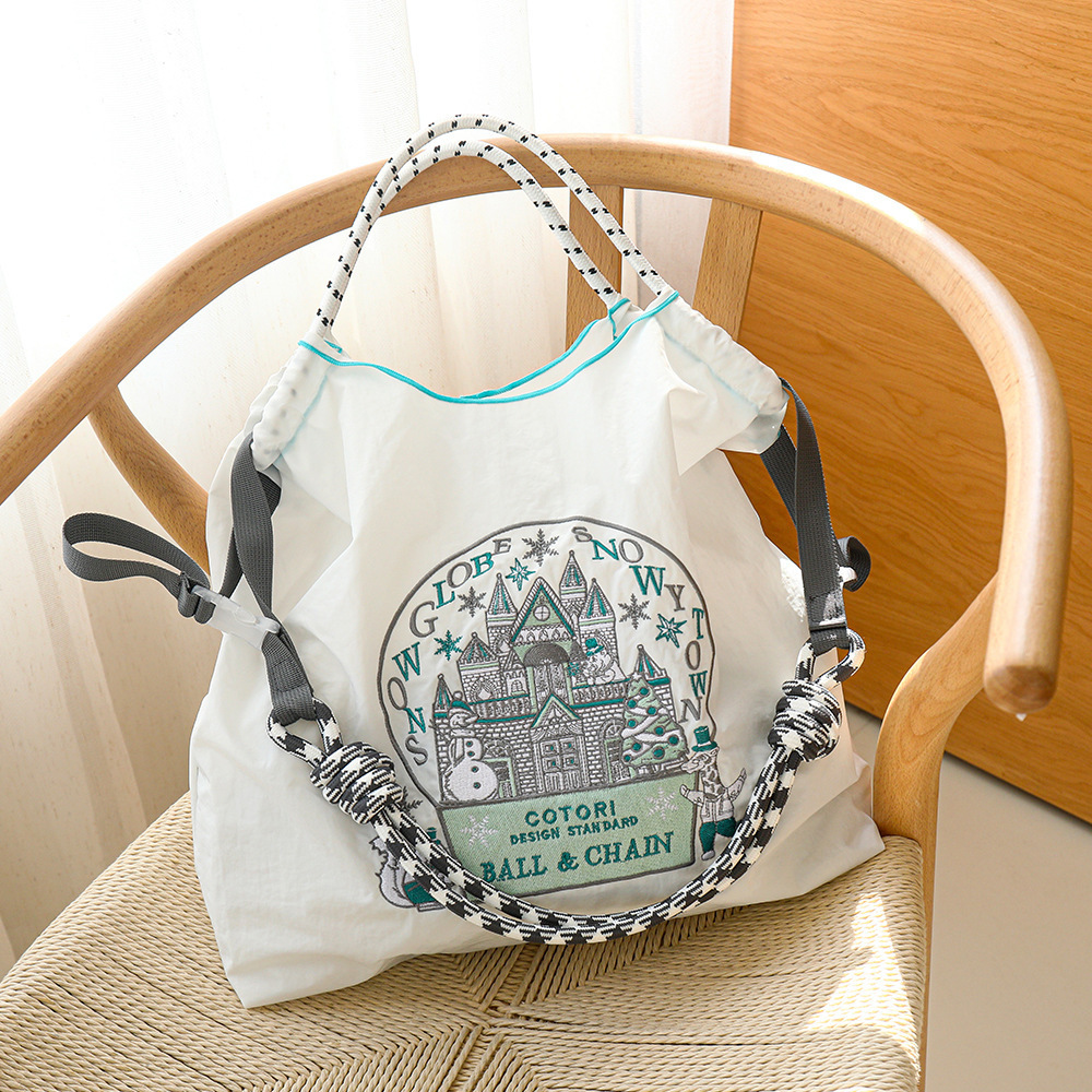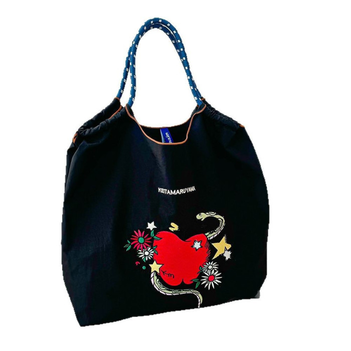 日系自製ball chain環保購物袋尼龍布刺綉花手提帆布包尼龍購物