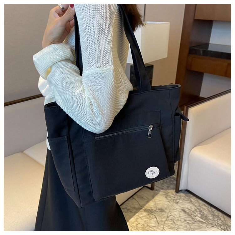 單肩包女大容量百搭帆布包學生簡約手提包休閒斜後背包補習包媽咪包
