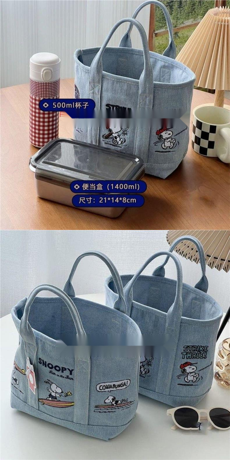 刺綉日系手拎包便當包外出可愛帆布包手提包女上班族寶媽