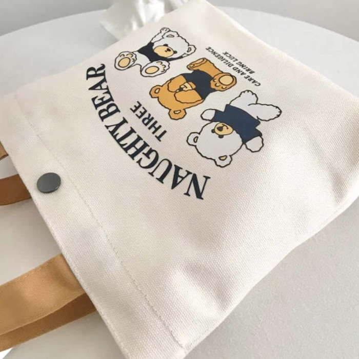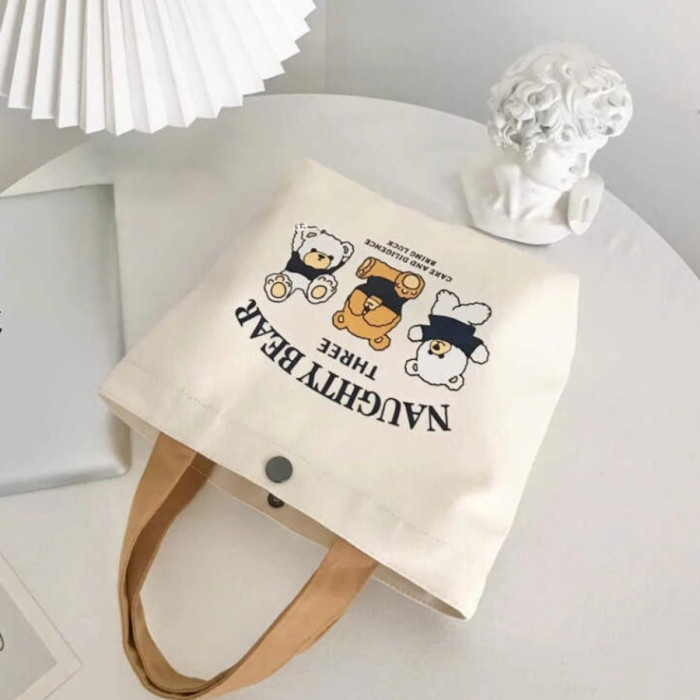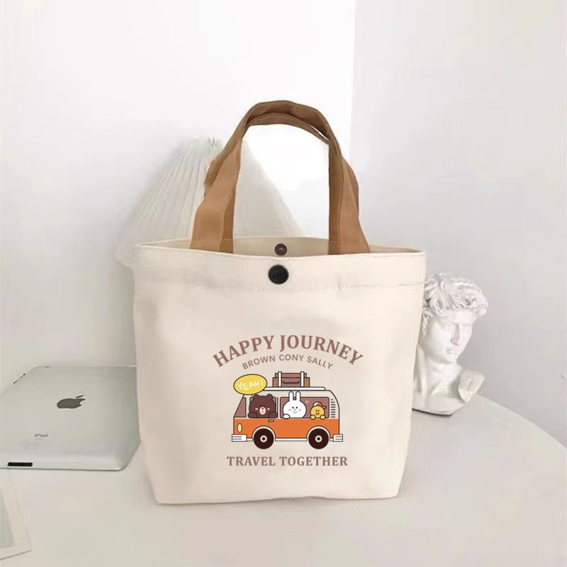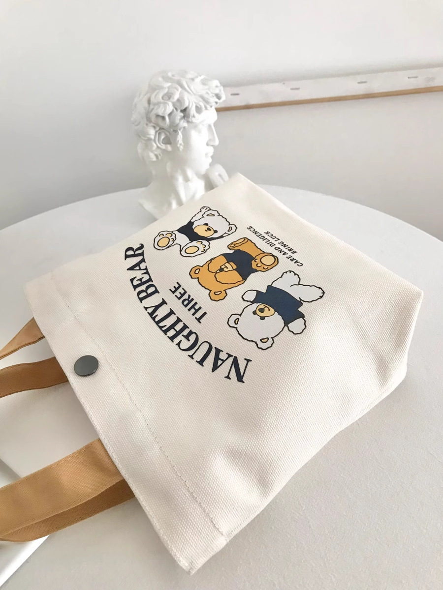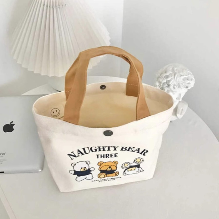 小量 新款小熊帆布包女士上班學生手提包手拎便當飯盒收納禮