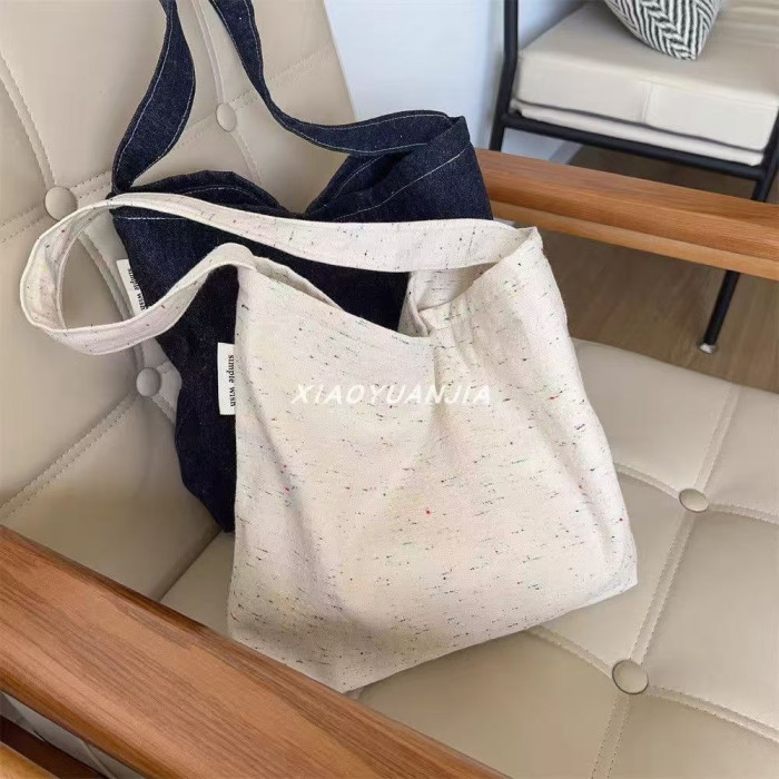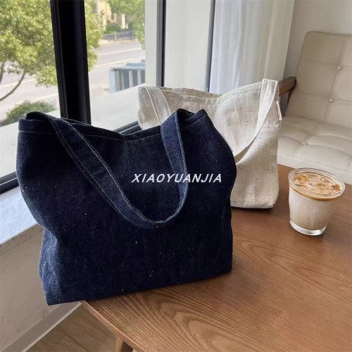 文藝牛仔帆布包大容量外出腋下托特包小衆簡約百搭通勤單肩包女