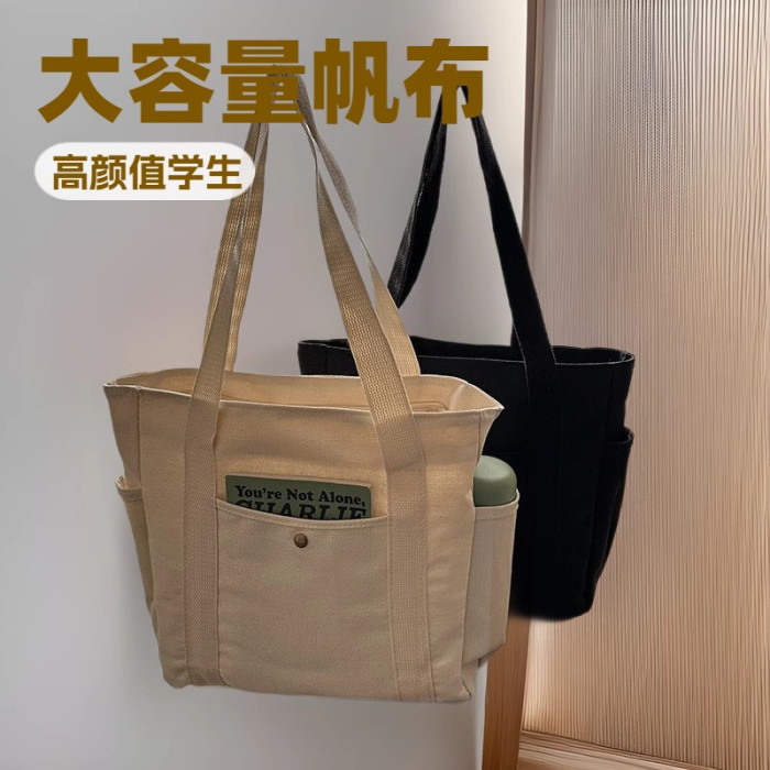 帆布包女托特包帆布袋上班外出大容量通勤學生裝書布袋包小包包