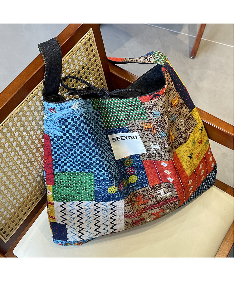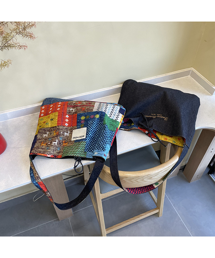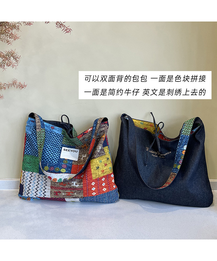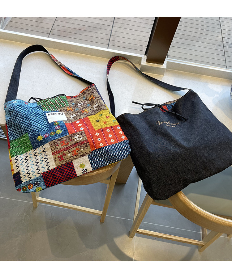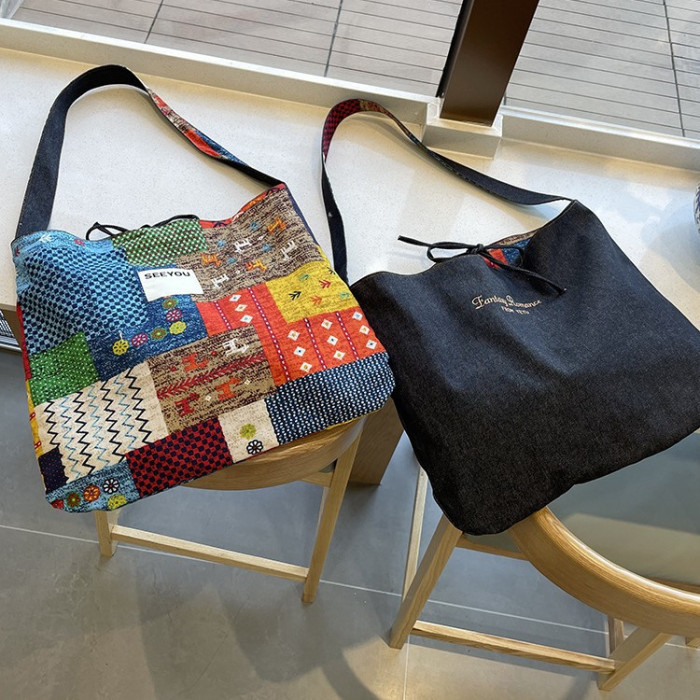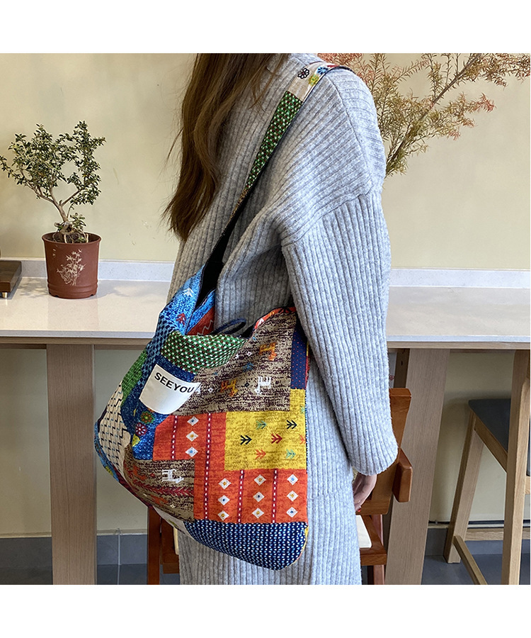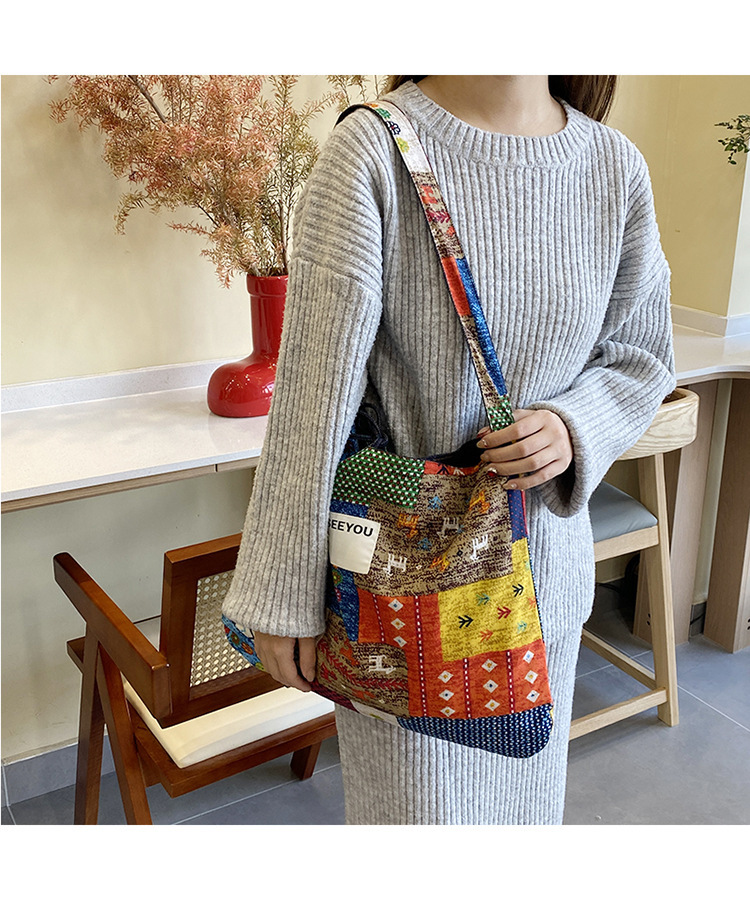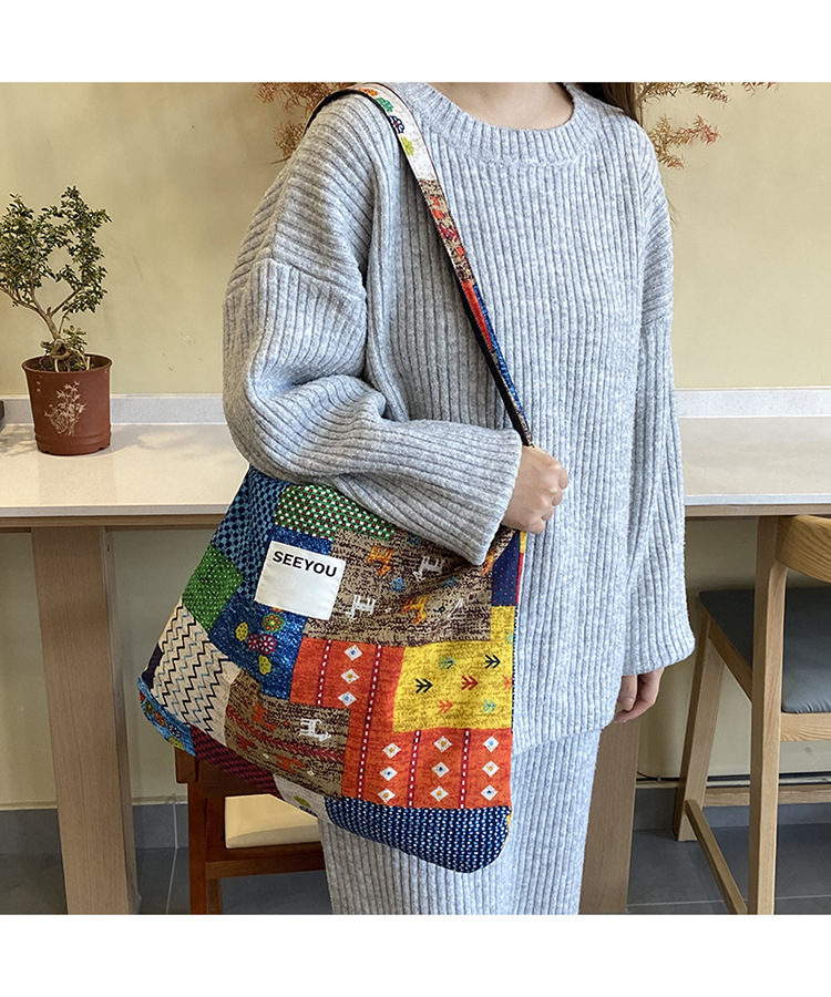春夏新款復古民族風碎花拼布單肩包波西米亞風情帆布包多用途女包