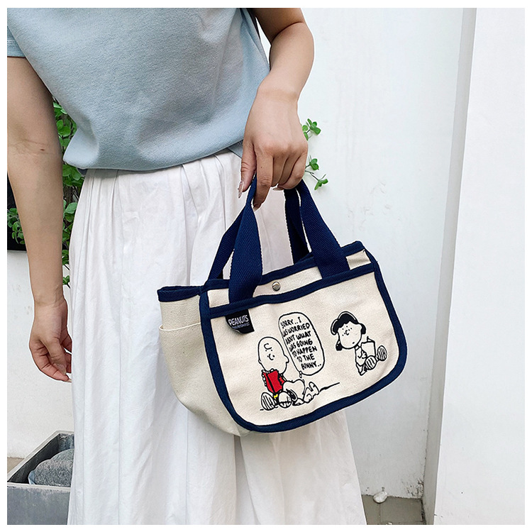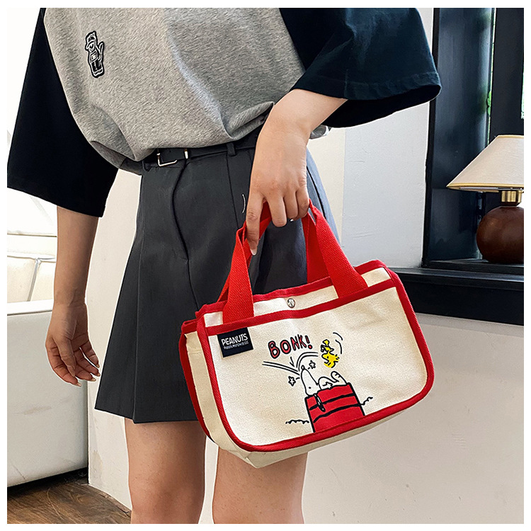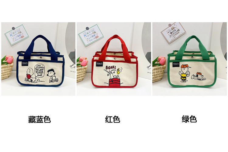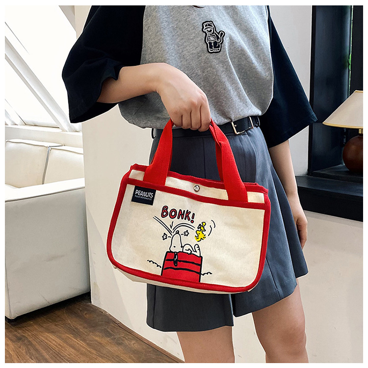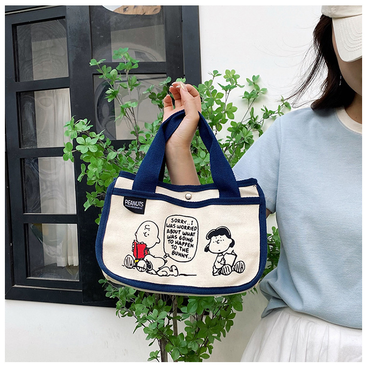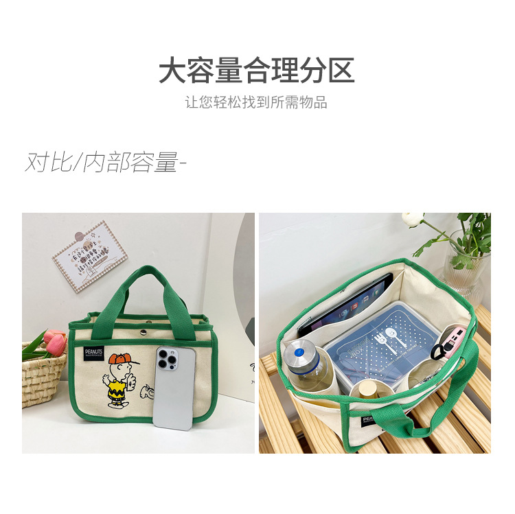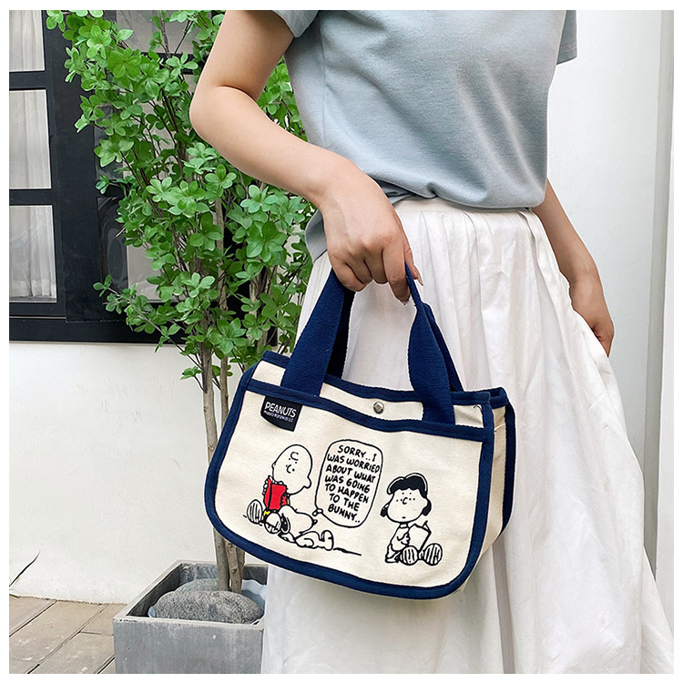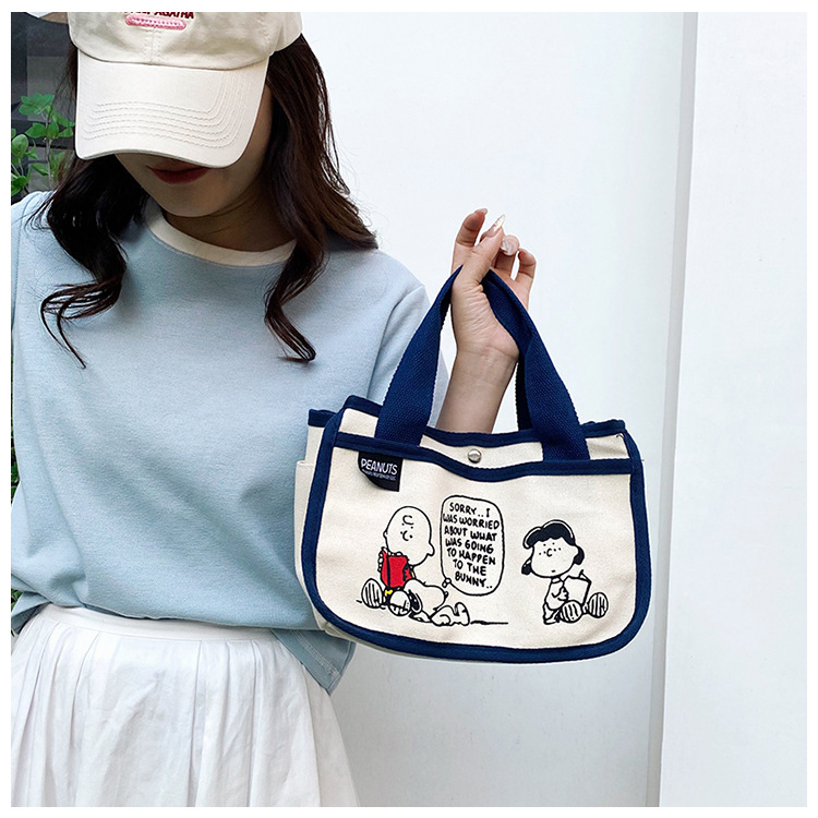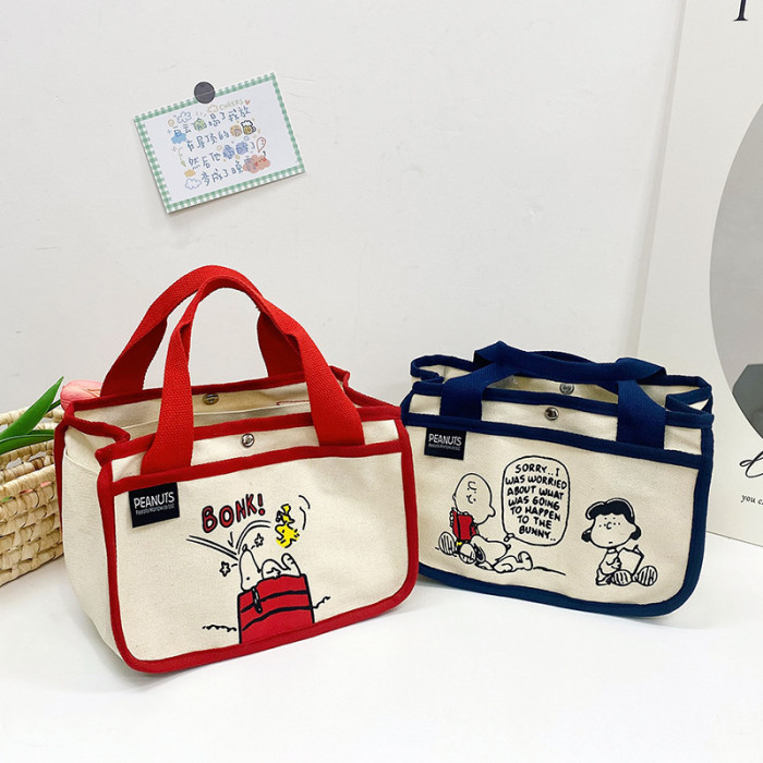 日韓可愛卡通史努比便當帆布包大容量多功能手提帆布袋速髮款