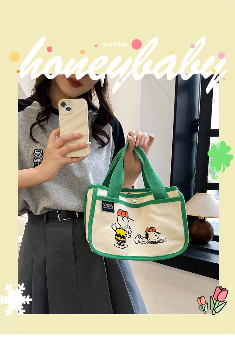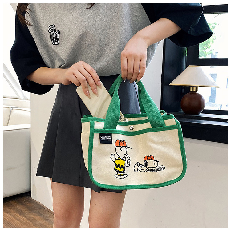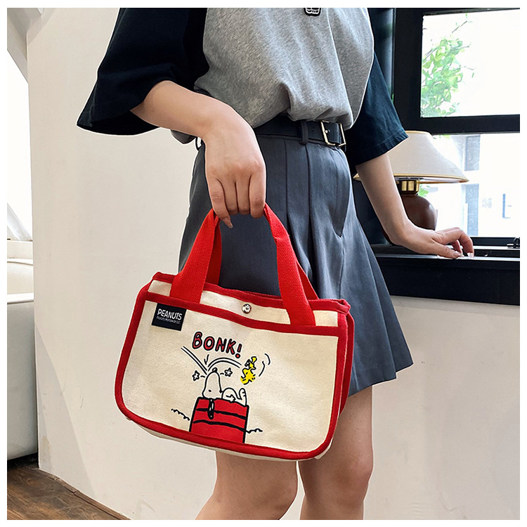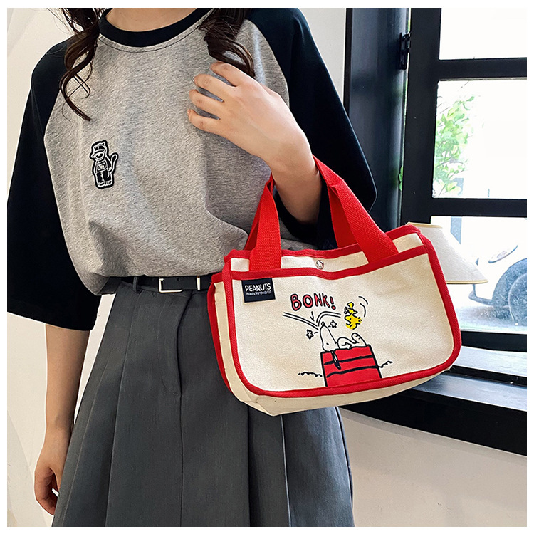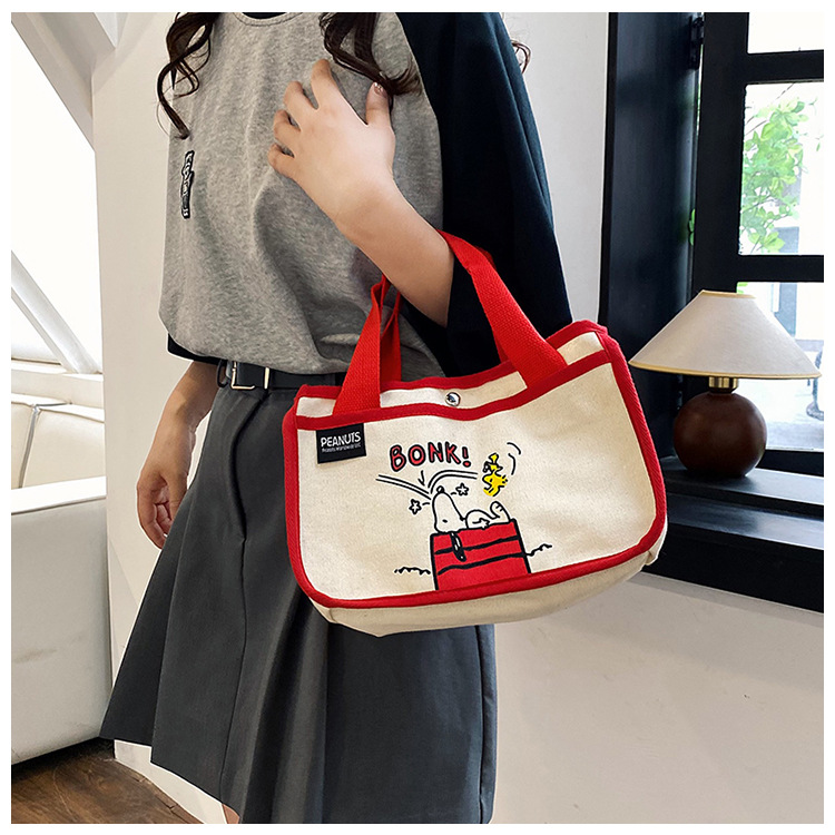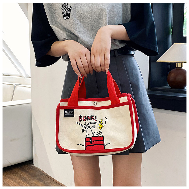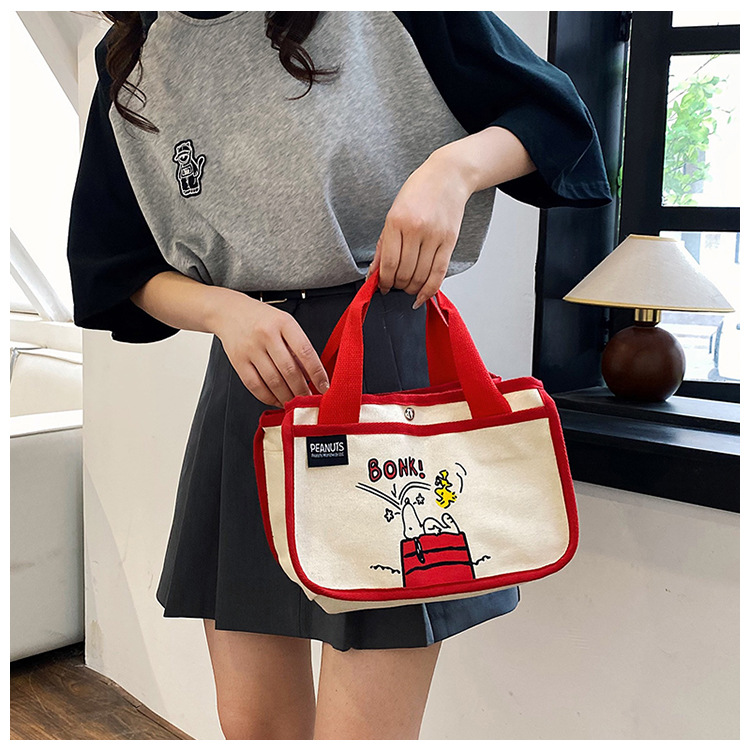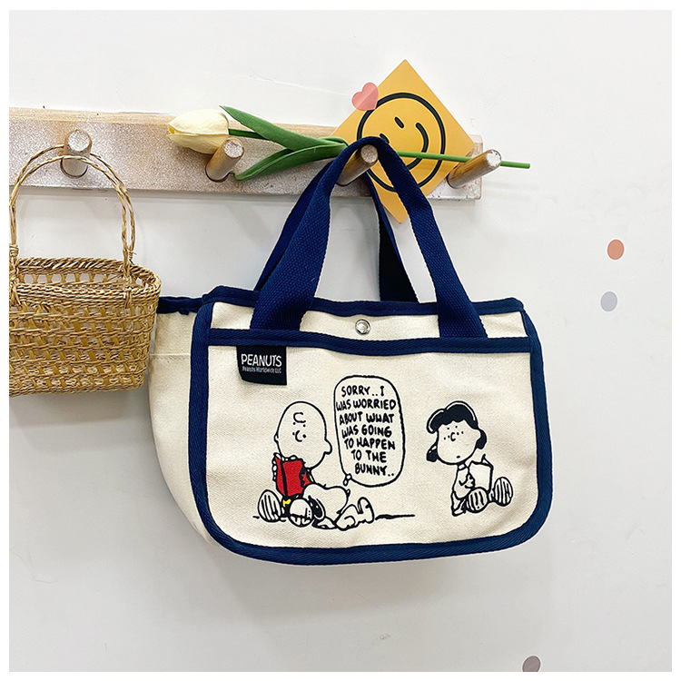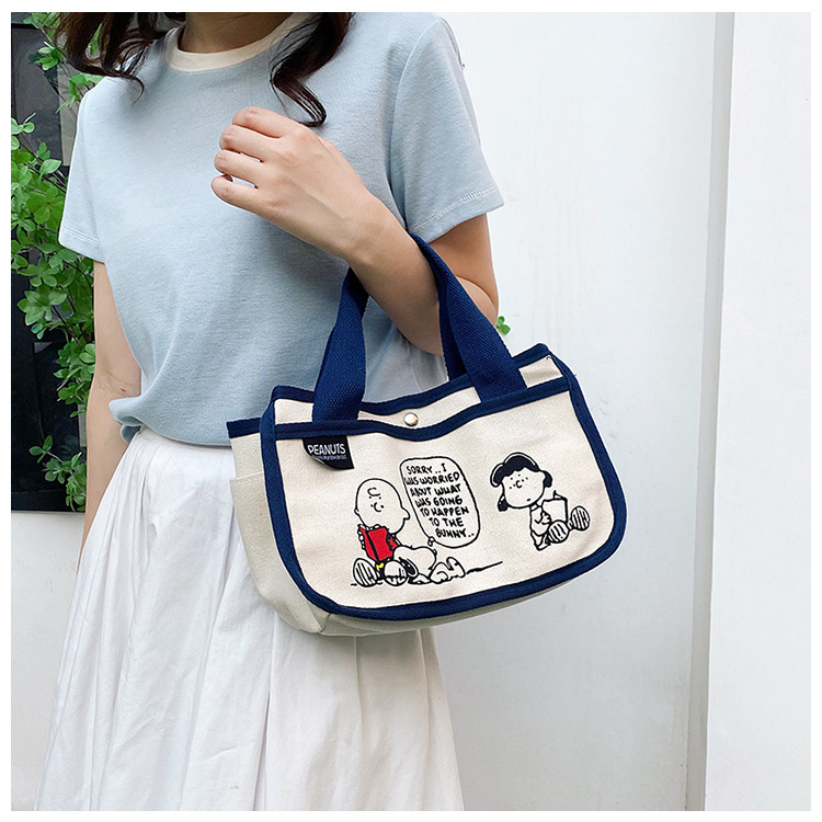 日韓可愛卡通史努比便當帆布包大容量多功能手提帆布袋速髮款