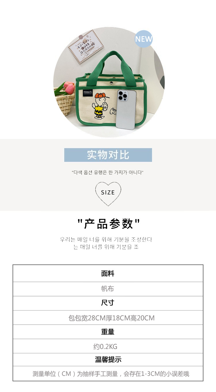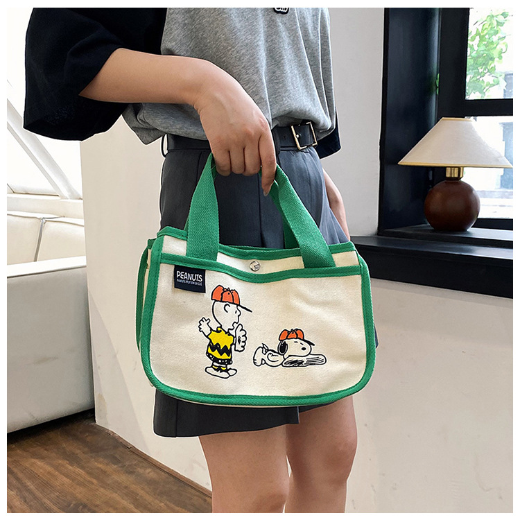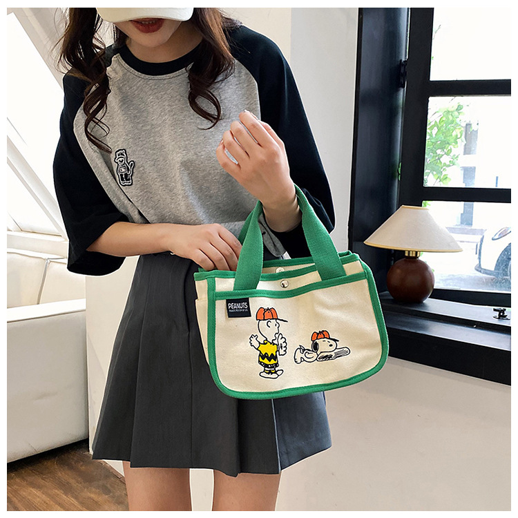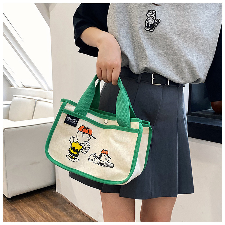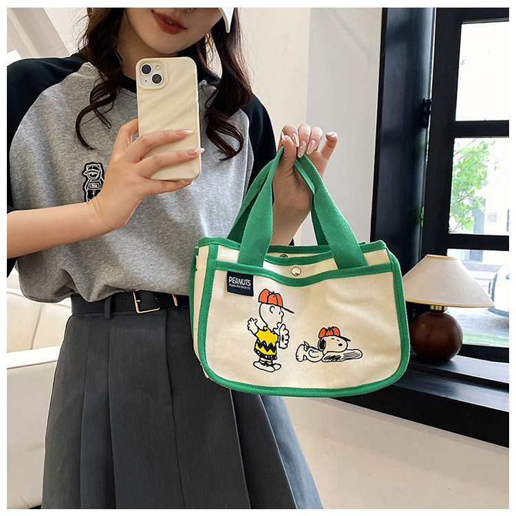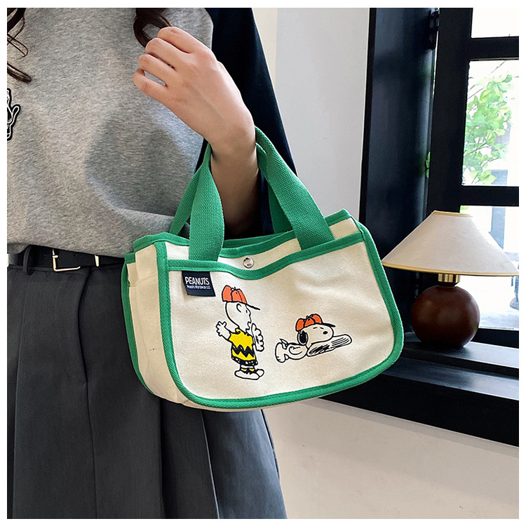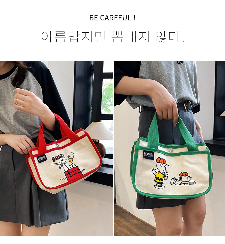 日韓可愛卡通史努比便當帆布包大容量多功能手提帆布袋速髮款