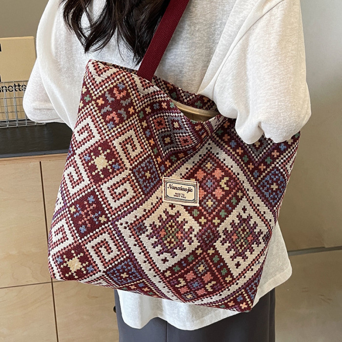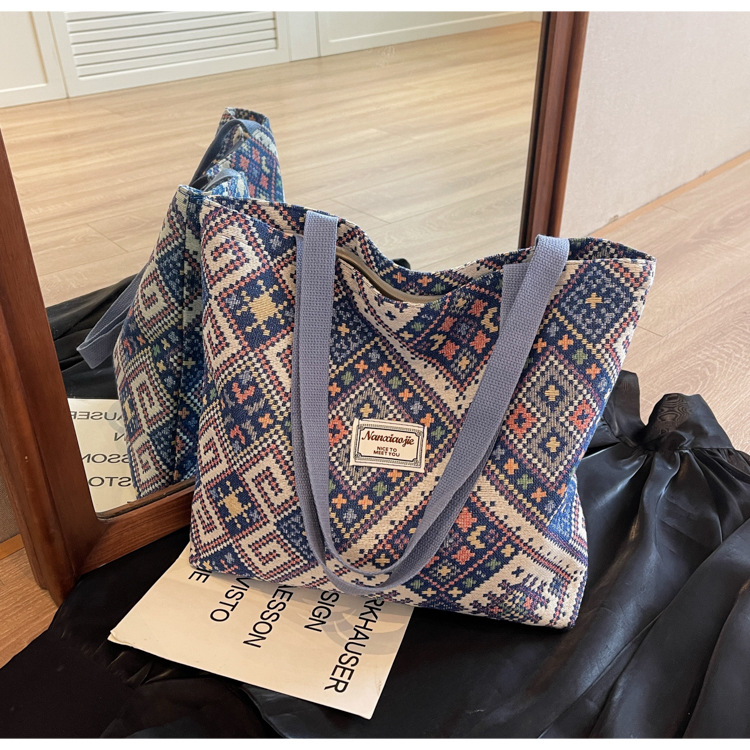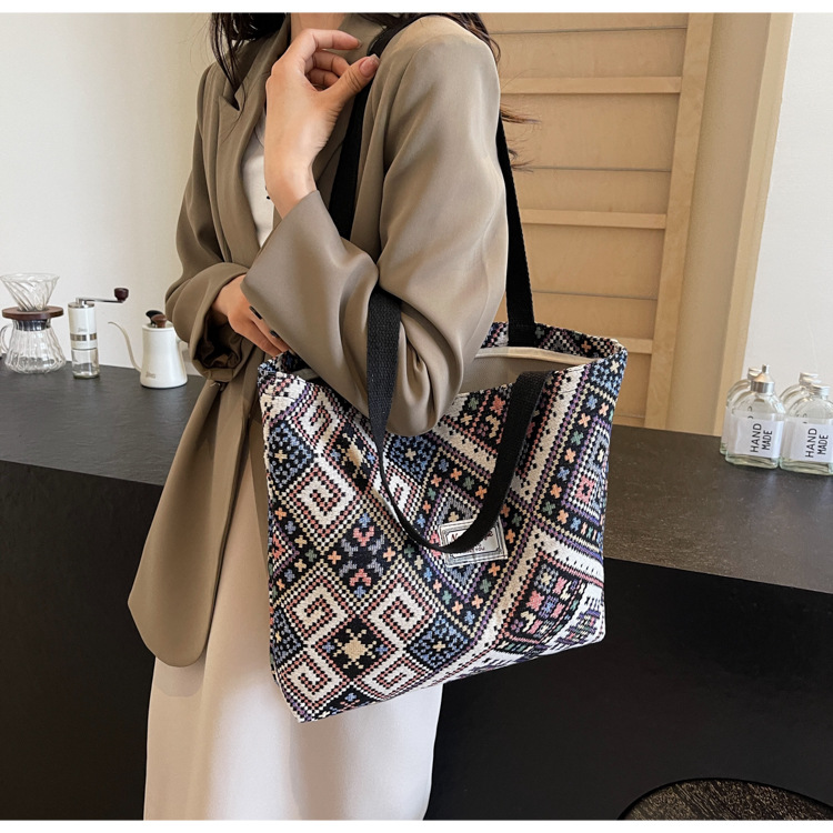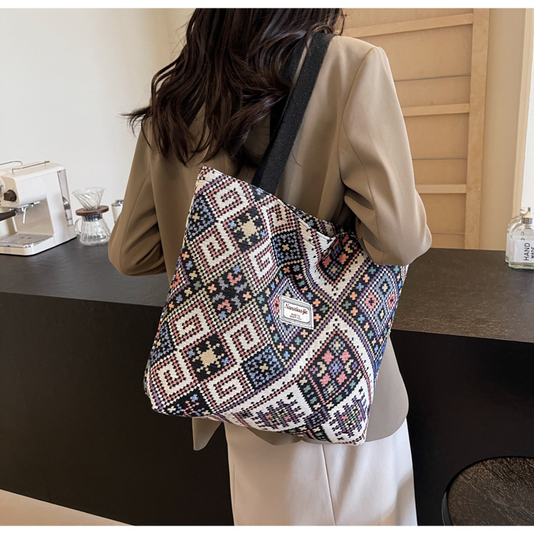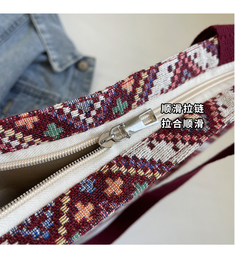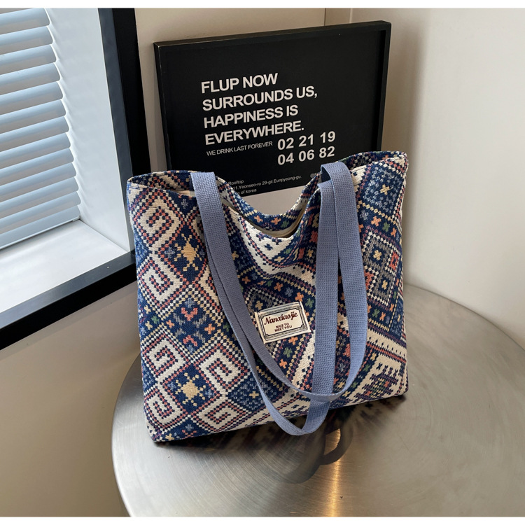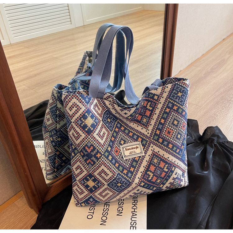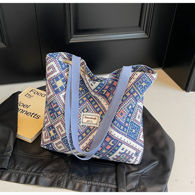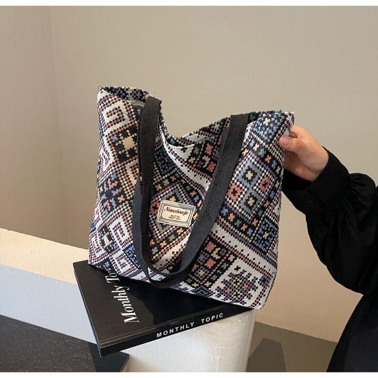 大容量民族風包包女2024單肩帆布包女ins大學生上課百搭單肩包女