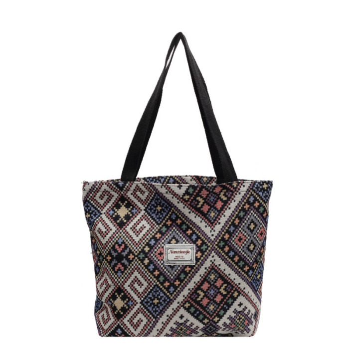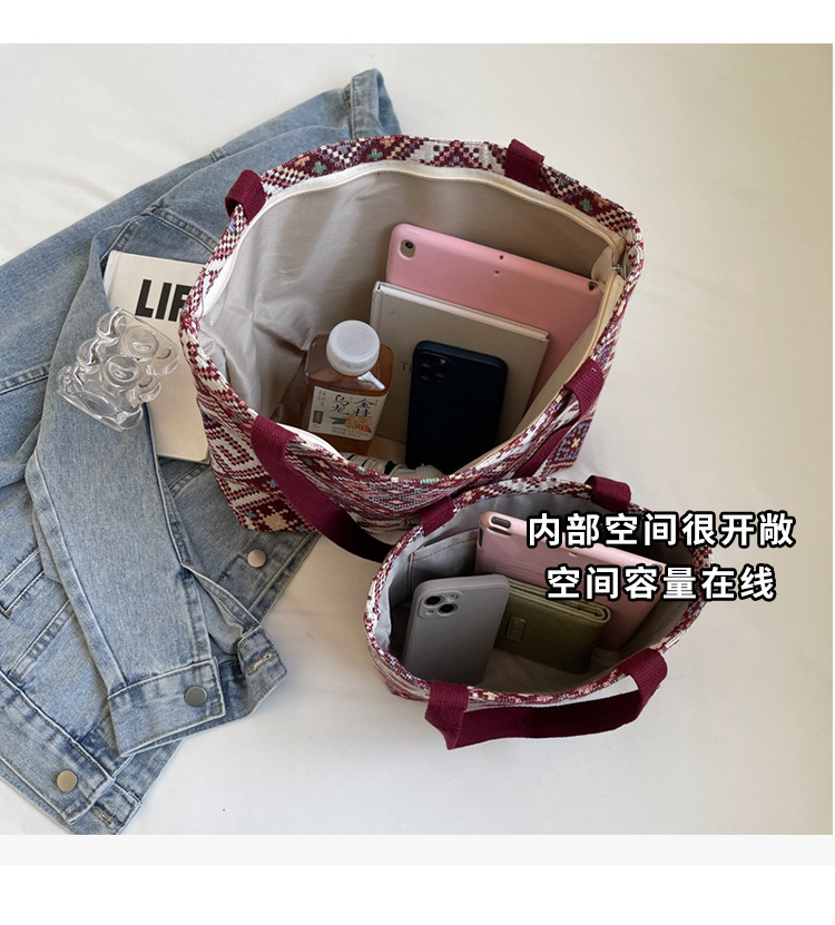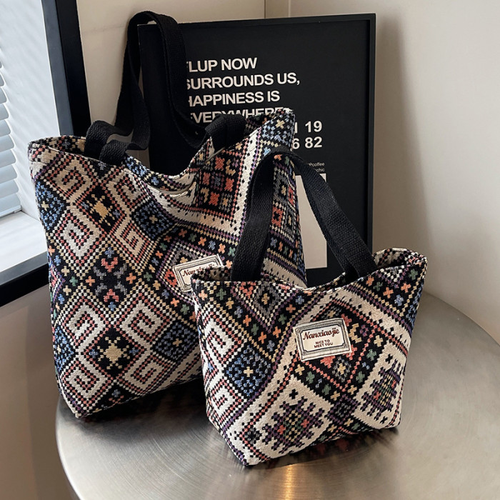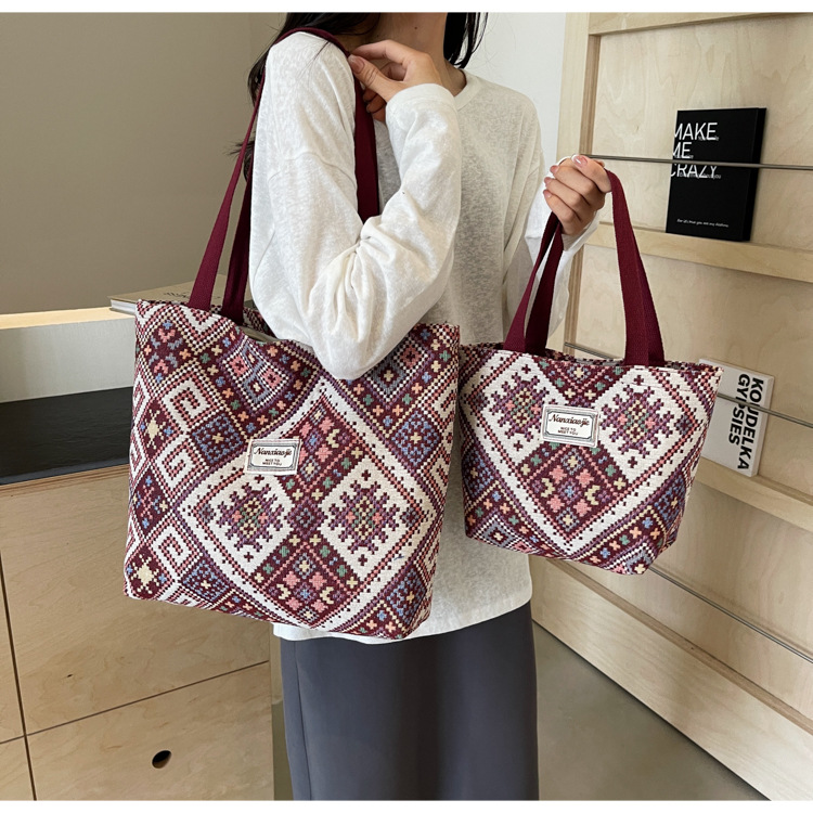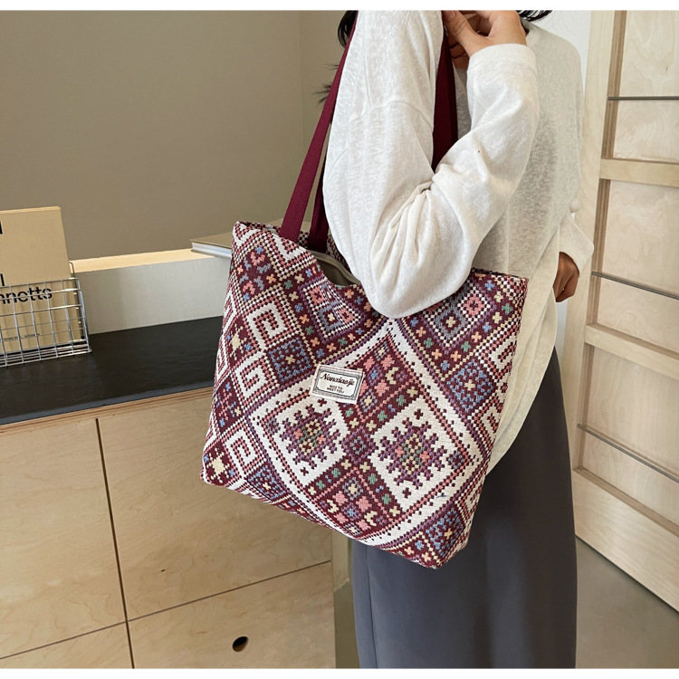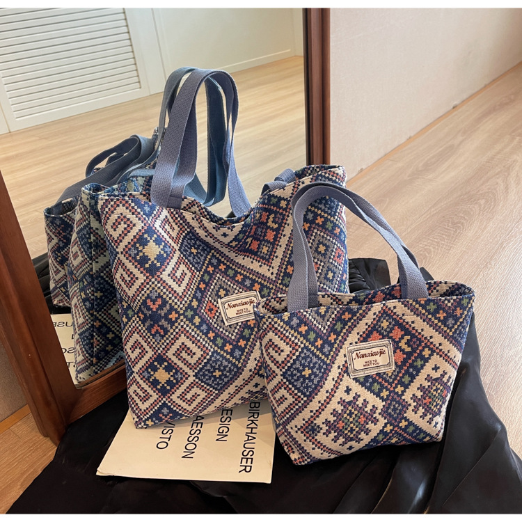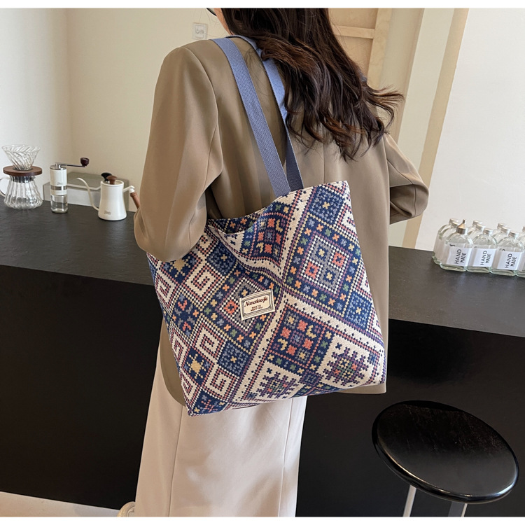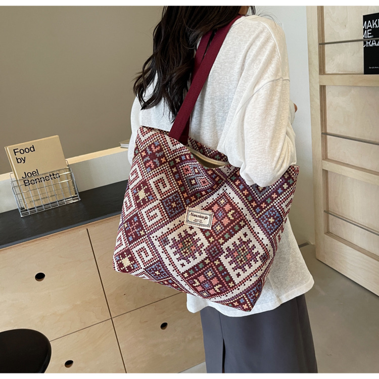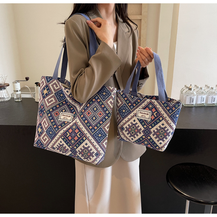 大容量民族風包包女2024單肩帆布包女ins大學生上課百搭單肩包女