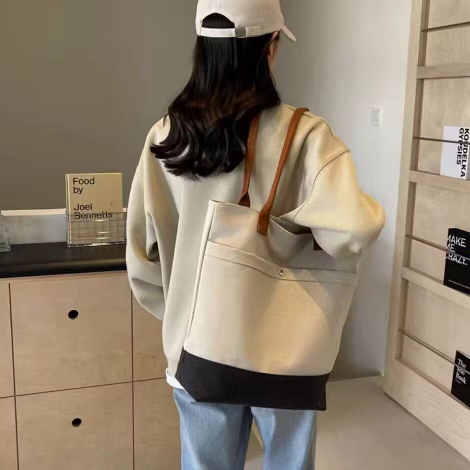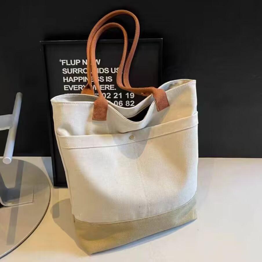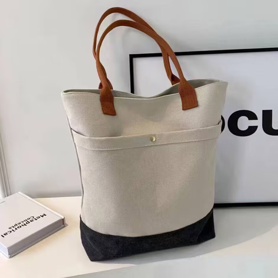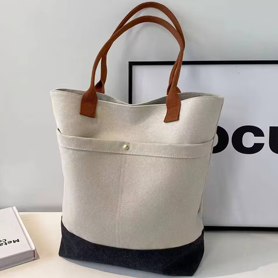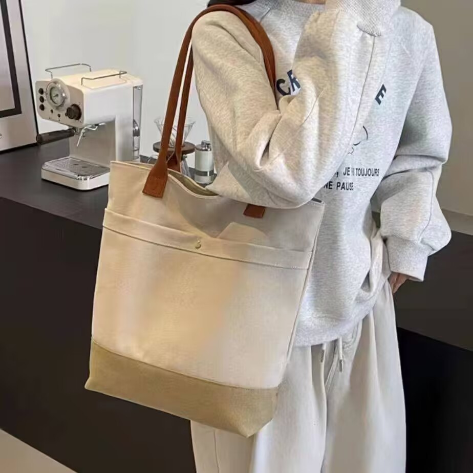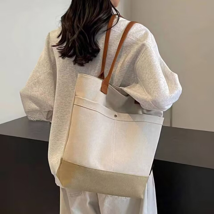 2024新款休閒托特包簡約時尚通勤帆布包韓版大學生上課托特包