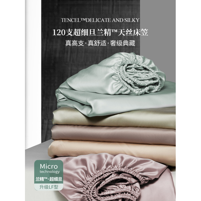 純色A類120支雙股超細旦LF蘭精天絲床笠單件涼感絲滑床單三件套夏