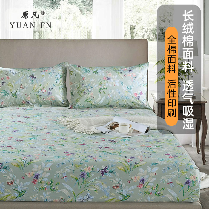 60支純棉印花床笠松緊帶單件全棉床笠防滑固定床單三件套床罩床上