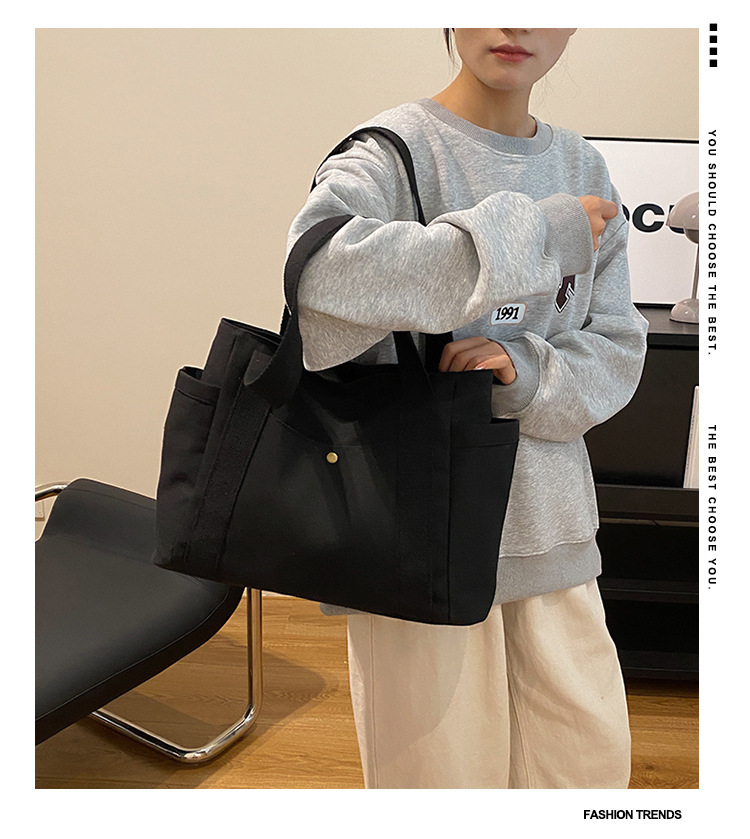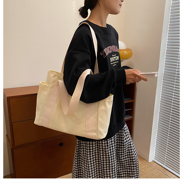 大容量托特帆布包上班外出高顔值通勤百搭文藝學生裝書單肩布袋包