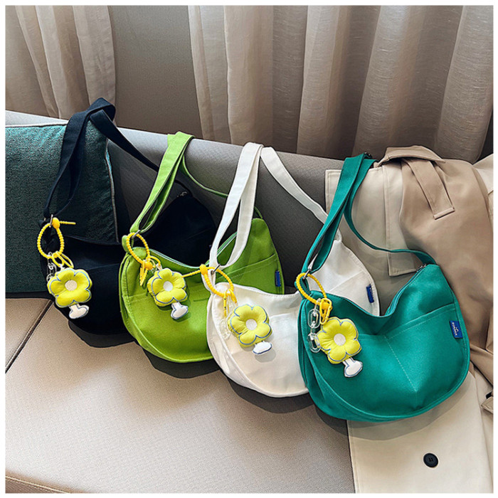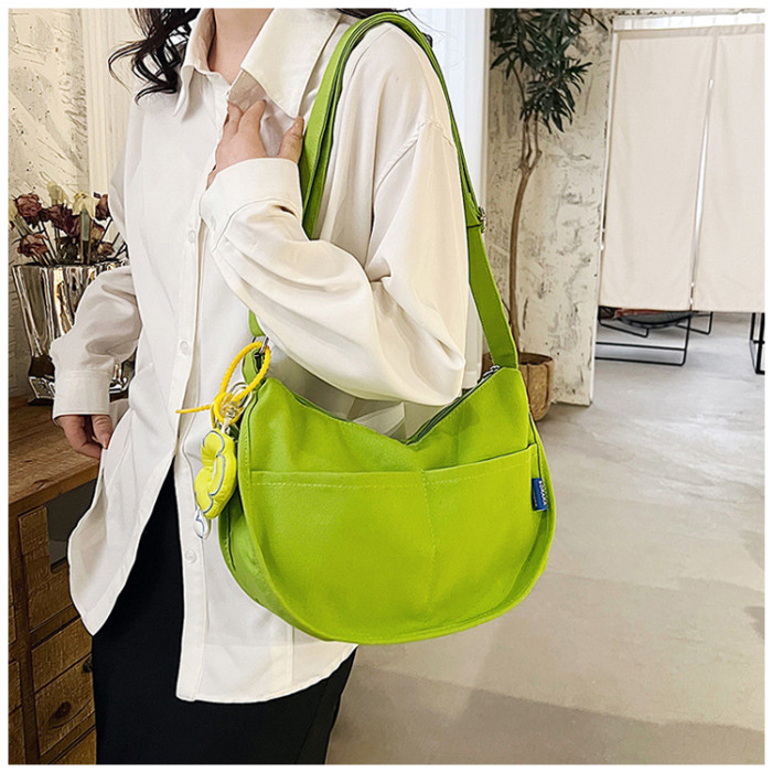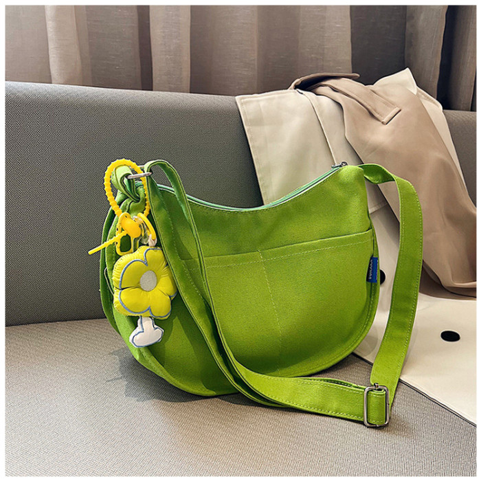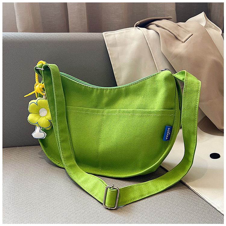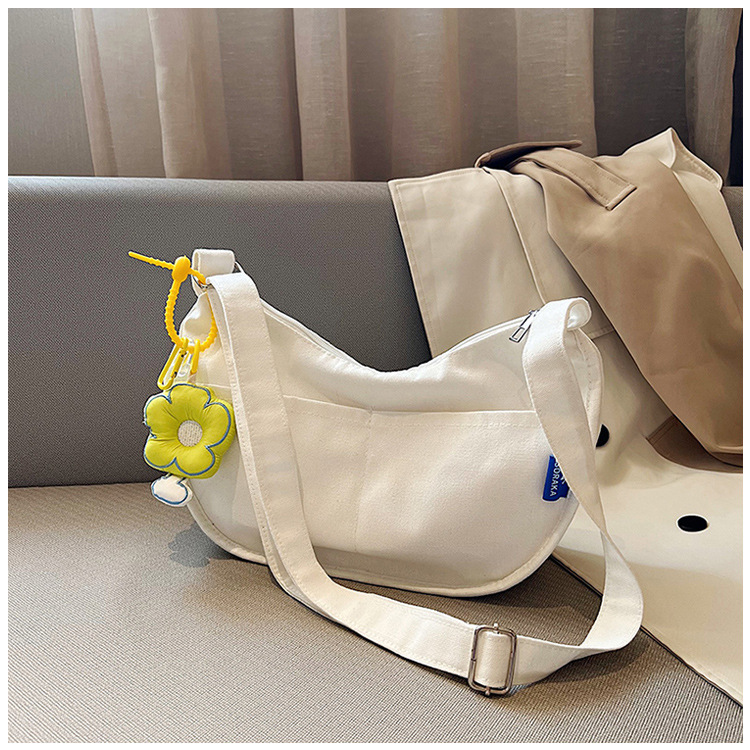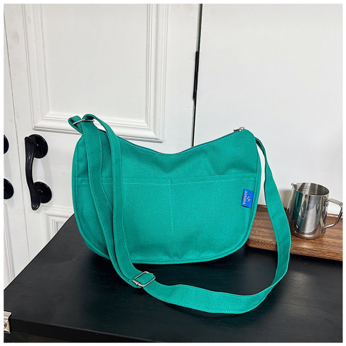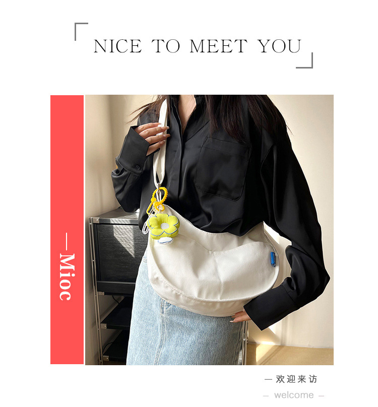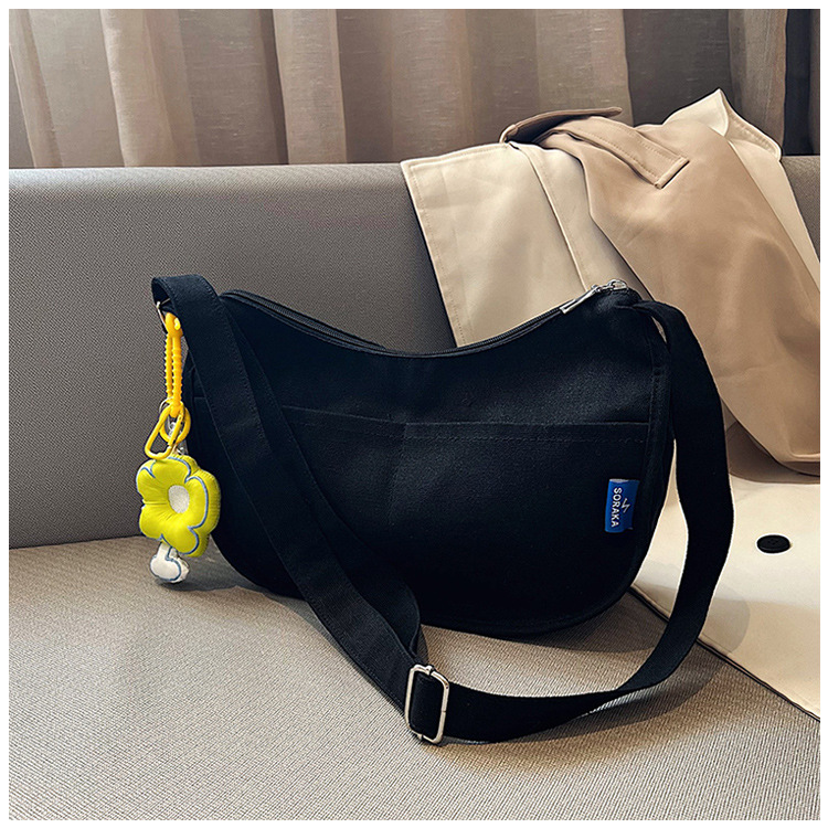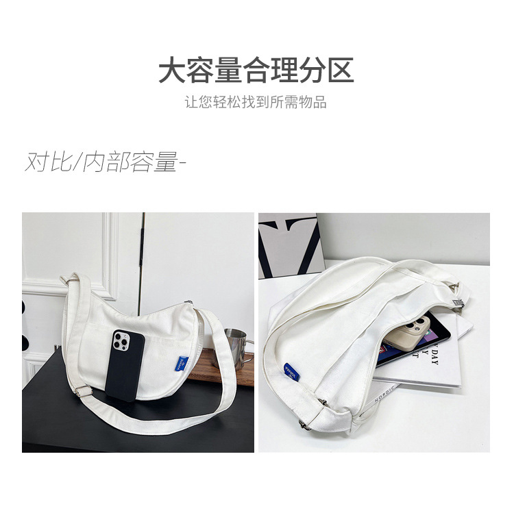 帆布包女新款 大容量簡約百搭大學生上課通勤單肩斜後背包ins餃子包