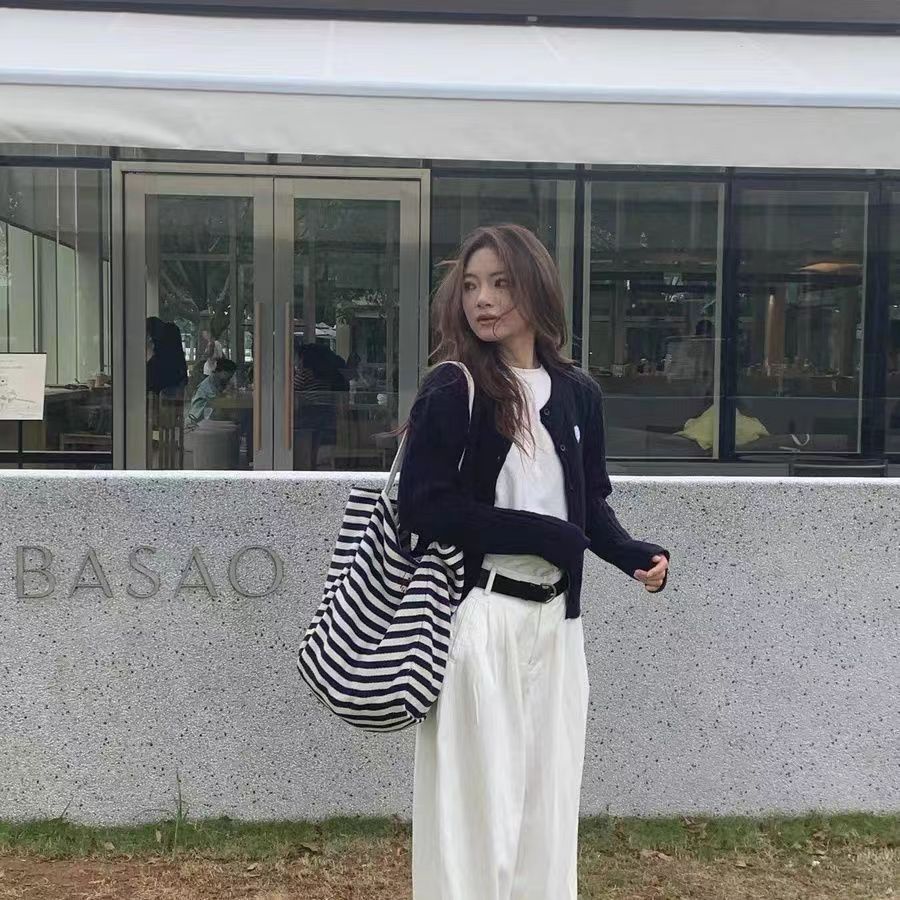 刺綉條紋包【米白色】