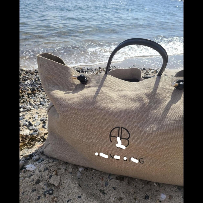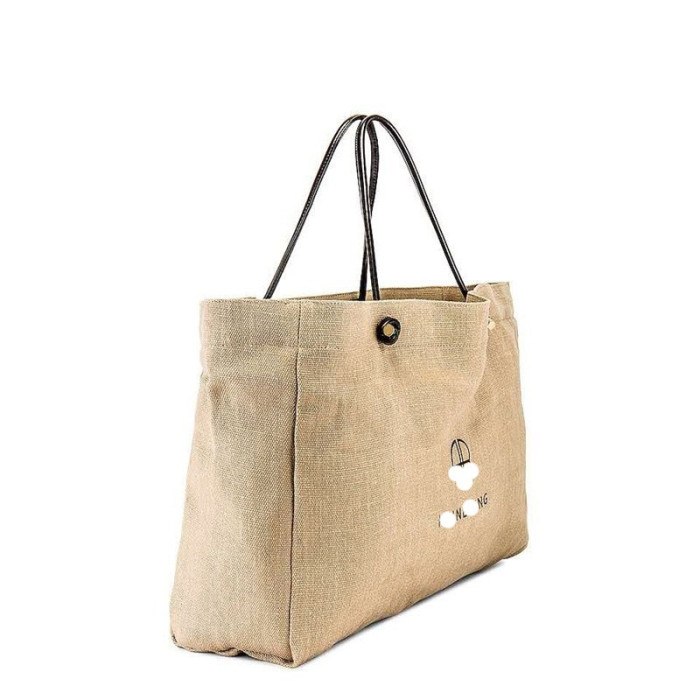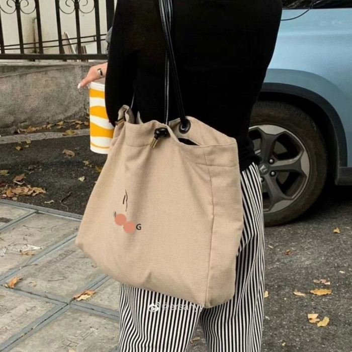 字母印花大容量托特包度假棉麻帆布包單肩包手提包可加