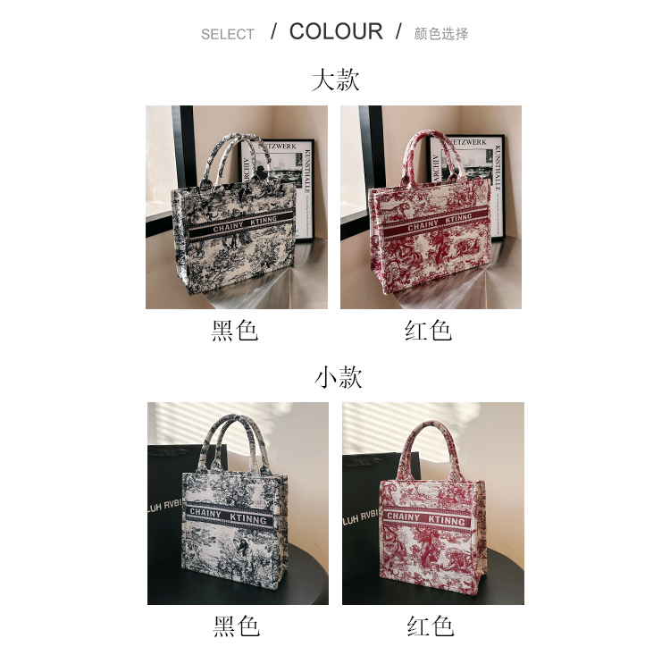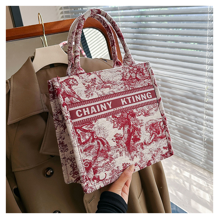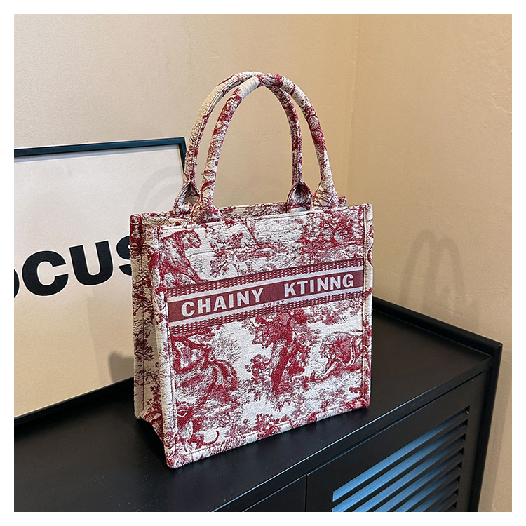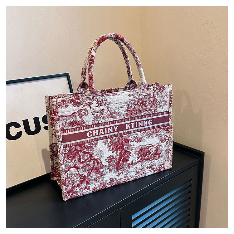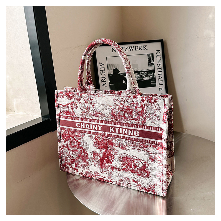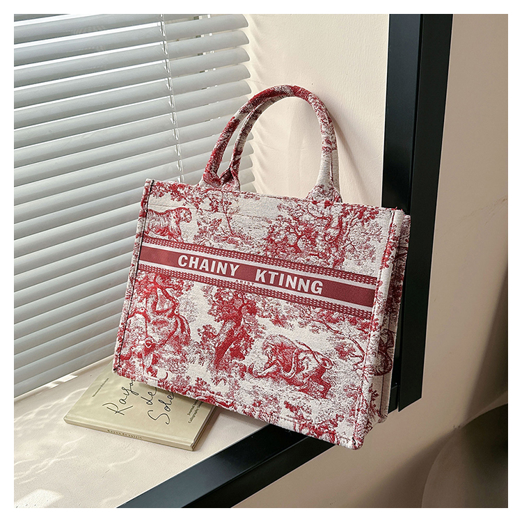 紅色婚包女2024新款新娘包高級感單肩帆布包大容量通勤手提托特包