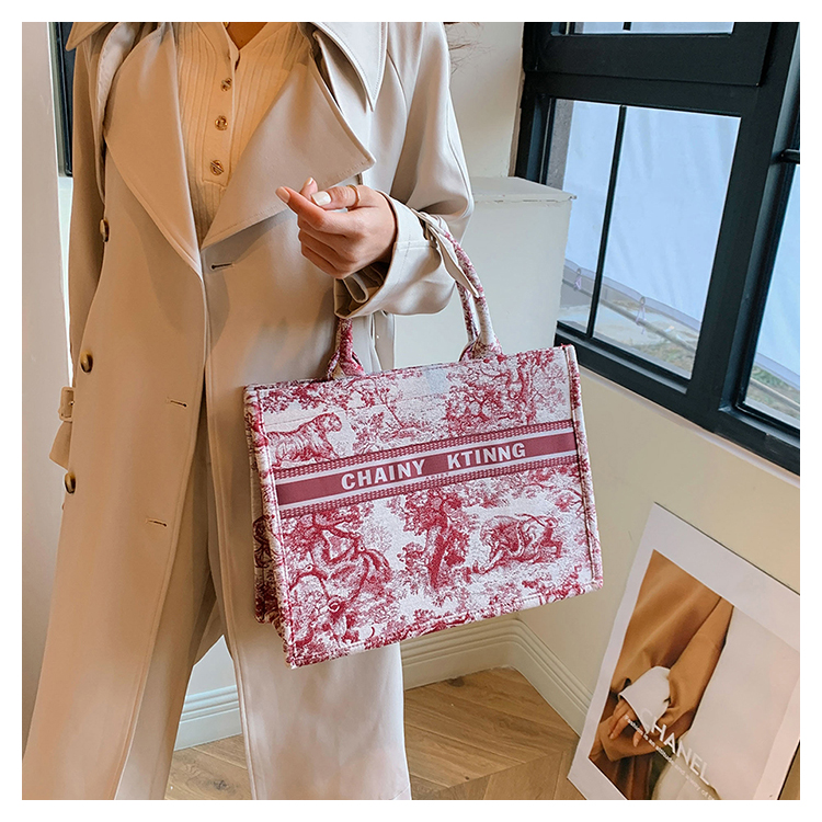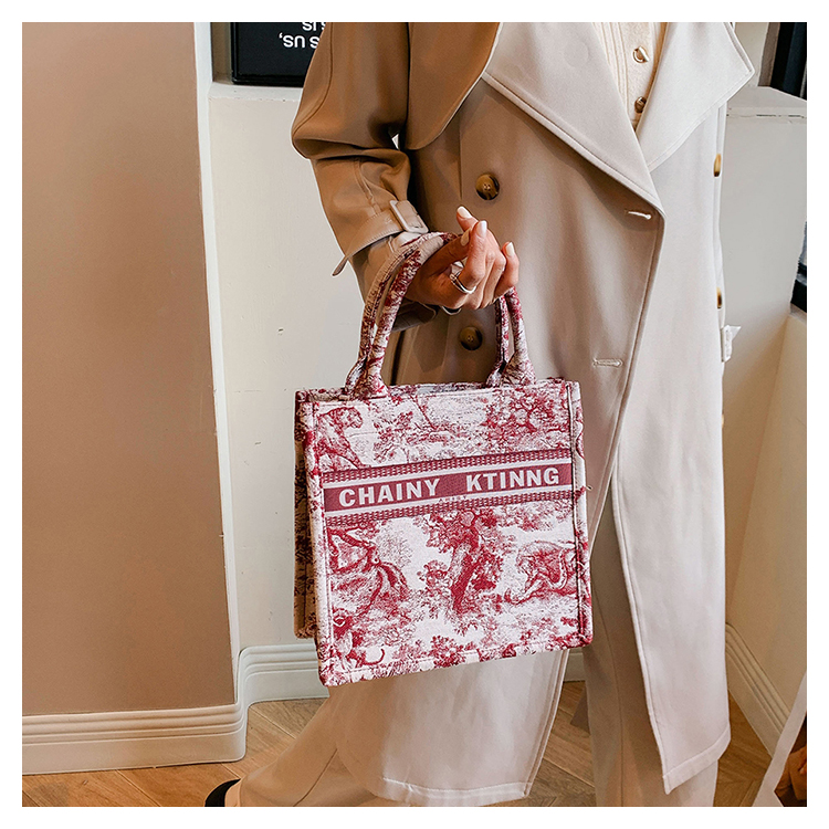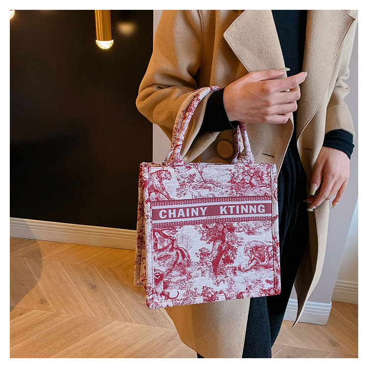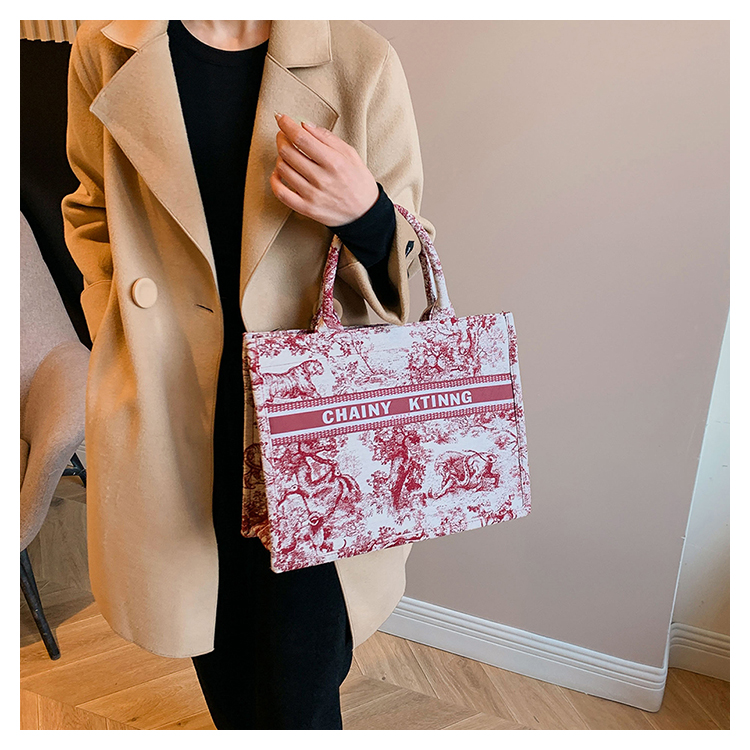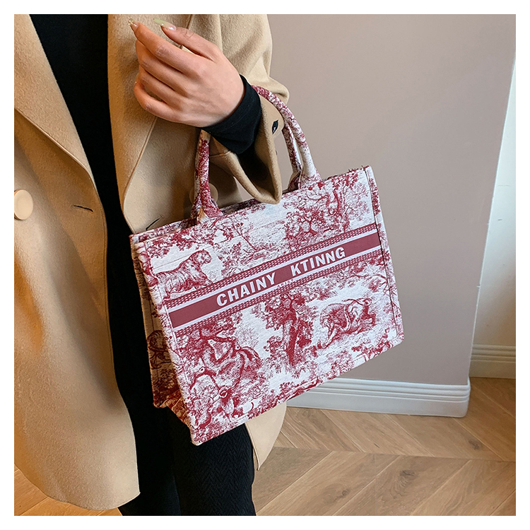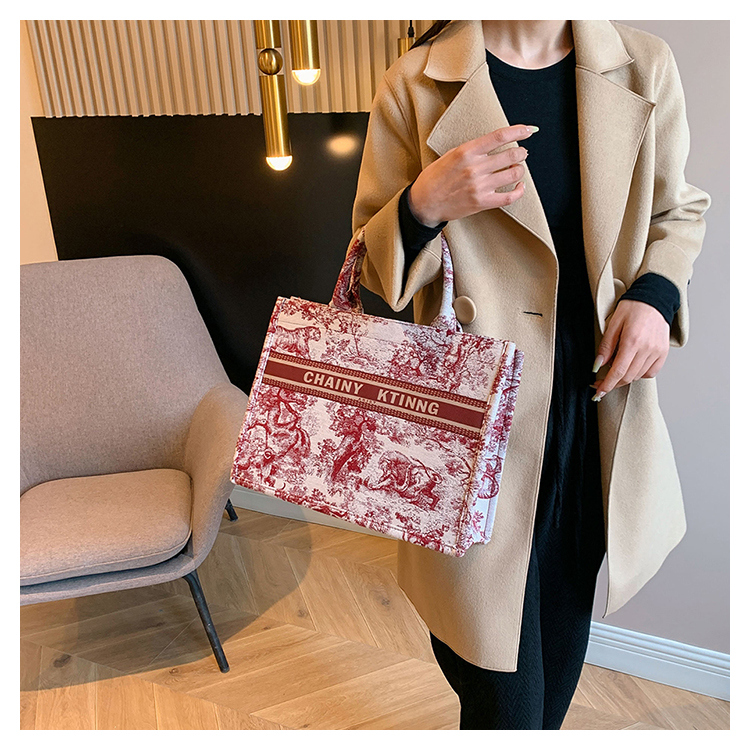 紅色婚包女2024新款新娘包高級感單肩帆布包大容量通勤手提托特包